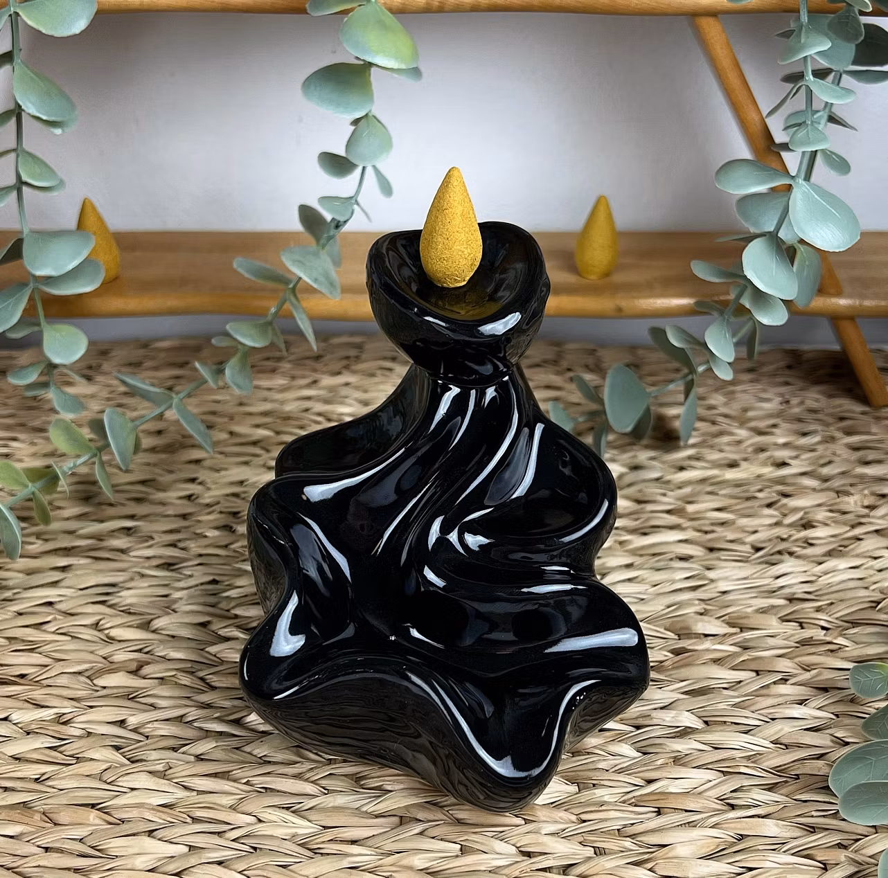 Hem › Rökelser › Rökelsetillbehör › BACKFLOW rökelsehållare "vattenfall" (svart) BACKFLOW rökelsehållare "vattenfall" (svart) Produkten är tyvärr slut i lager 😣