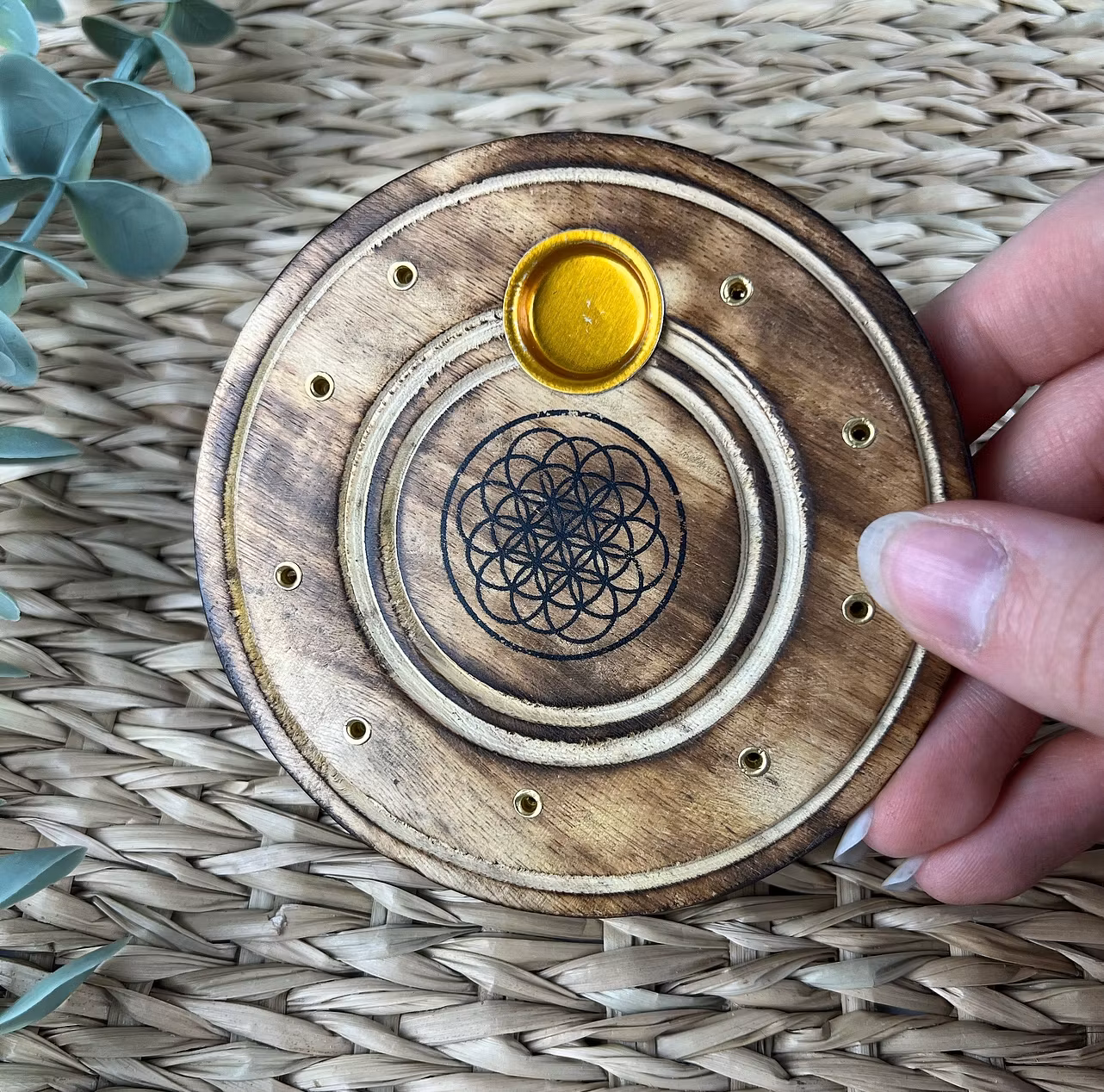 Just denna rökelsehållaren har ett tryck i mitten i form av Livets Frö.