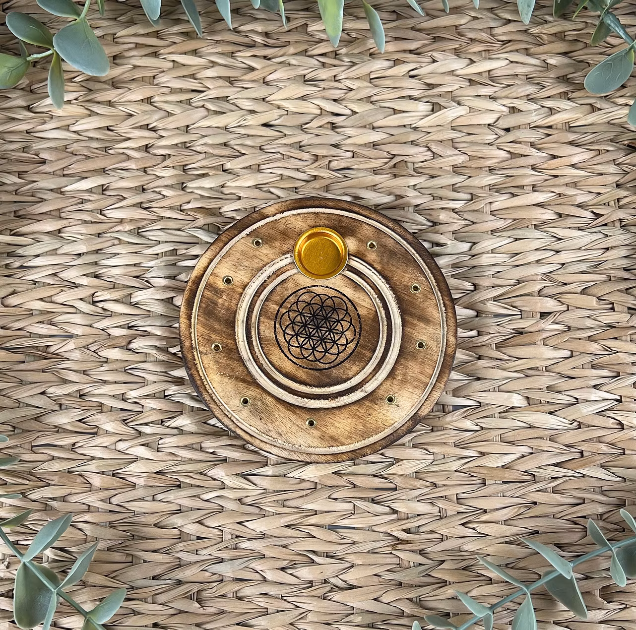 Rökelsehållare (cirkelformad) med tryck i form av Livets Frö