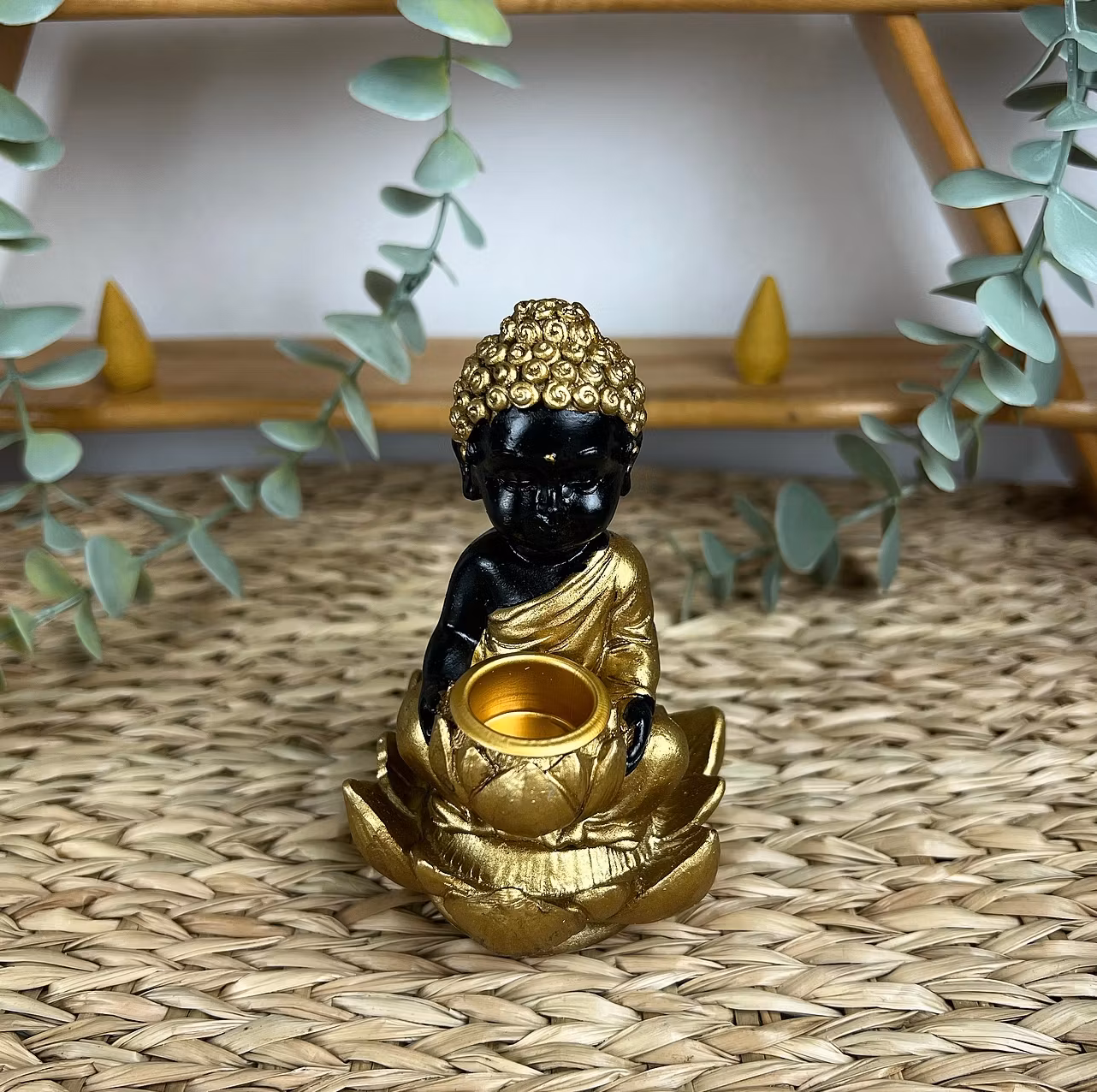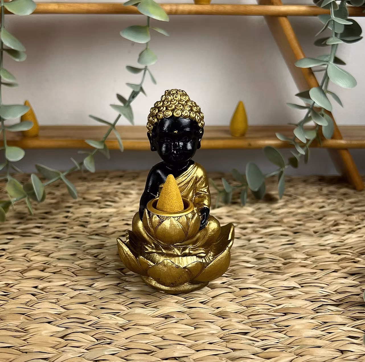 BACKFLOW rökelsehållare Buddha gul/svart