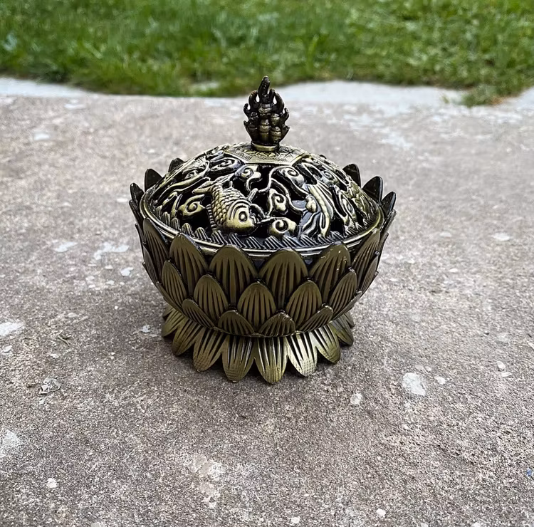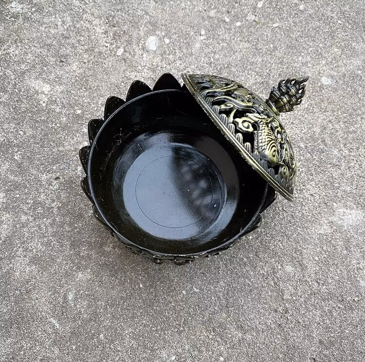 Denna rökelsehållare går att använda både för rökelsekoner men även för lös rökelse där man använder sig av sand och kolpuckar. Sand och kolpuckar kommer komma upp på hemsidan inom kort.
