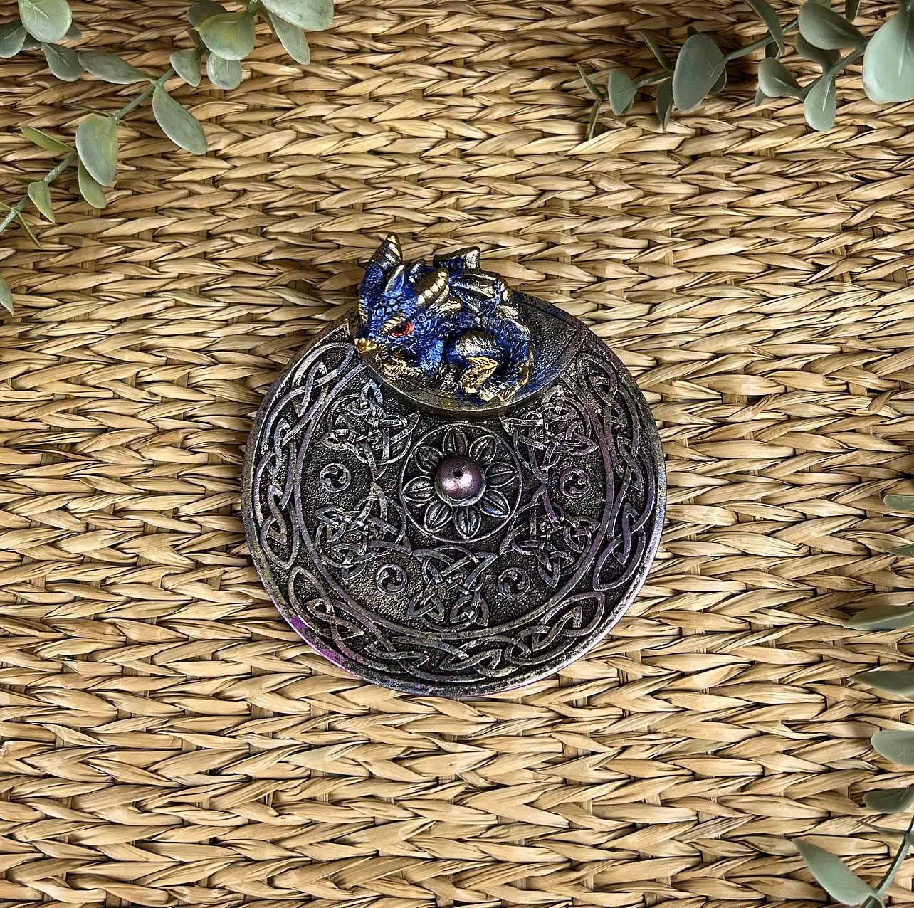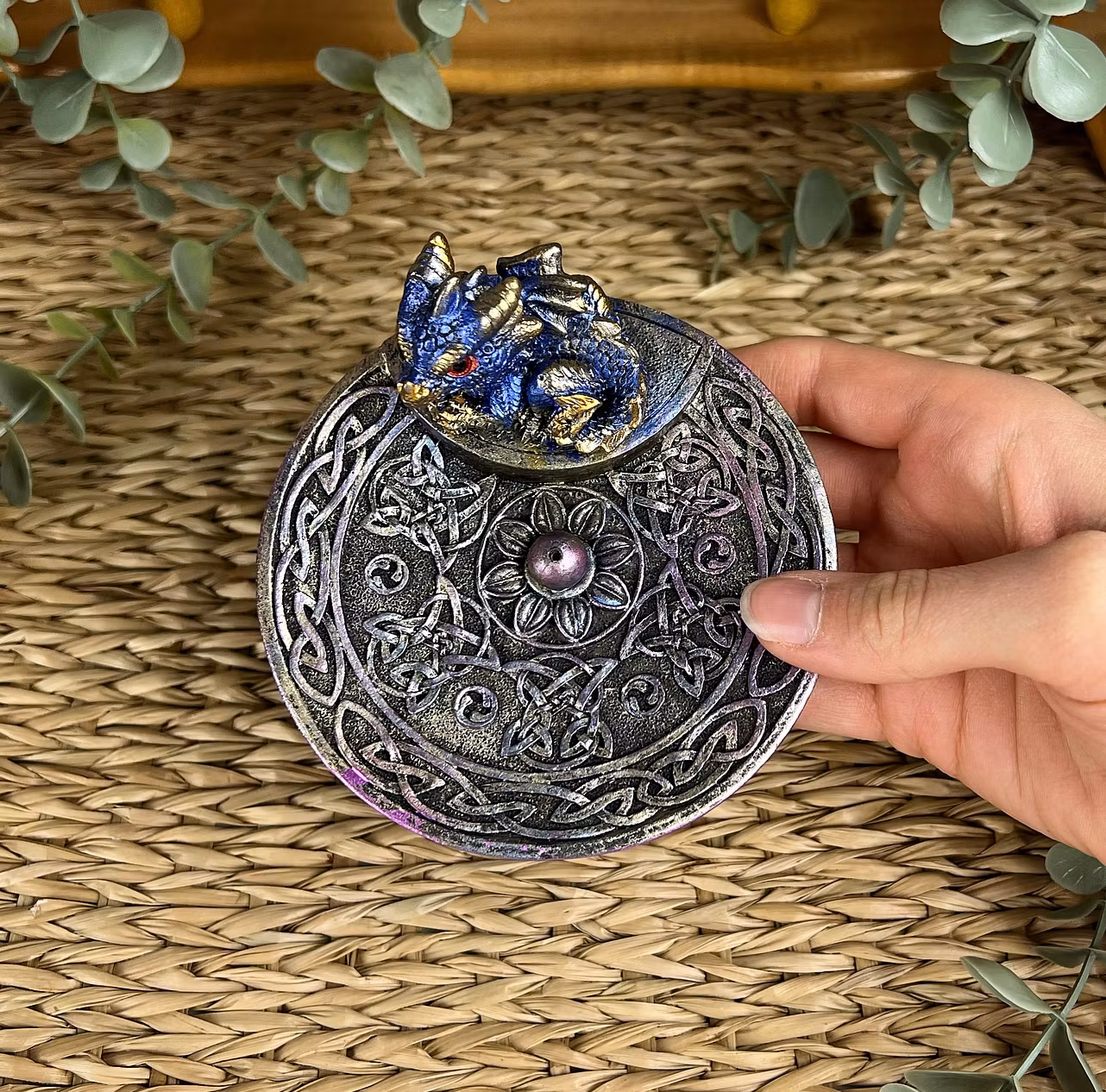 Hem › Rökelser › Rökelsetillbehör › Rökelsehållare för pinnar fat med drakunge Rökelsehållare för pinnar fat med drakunge Produkten är tyvärr slut i lager 😣