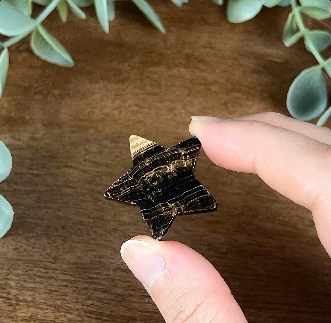 På bilden ser ni stjärnor av Chokladkalcit av god kvalitét