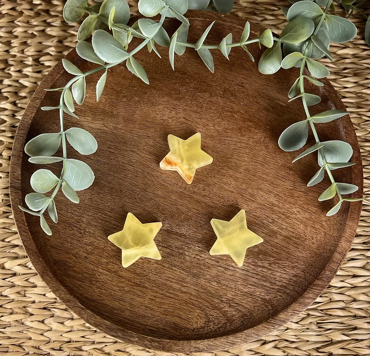 På bilden ser ni stjärnor av Citronkalcit av god kvalitét