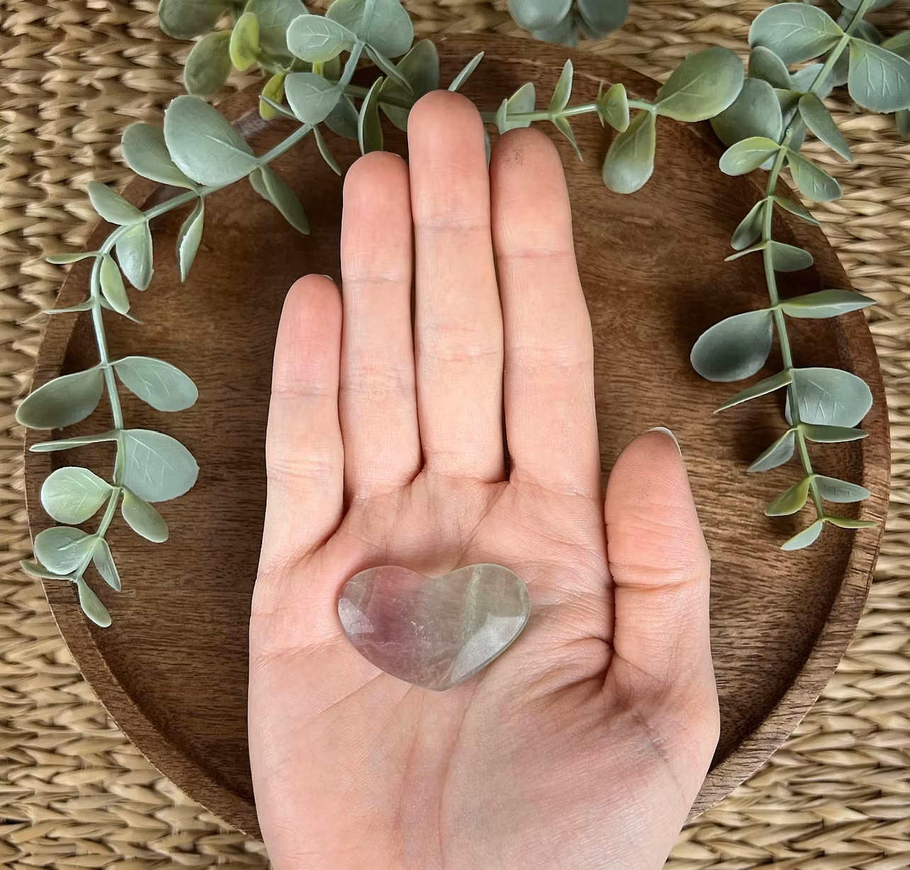 På bilden ser ni ett mindre hjärta av Fluorit (just denna pastelliga typ av fluorit kallas för godisfluorit/candyfluorit) 💕