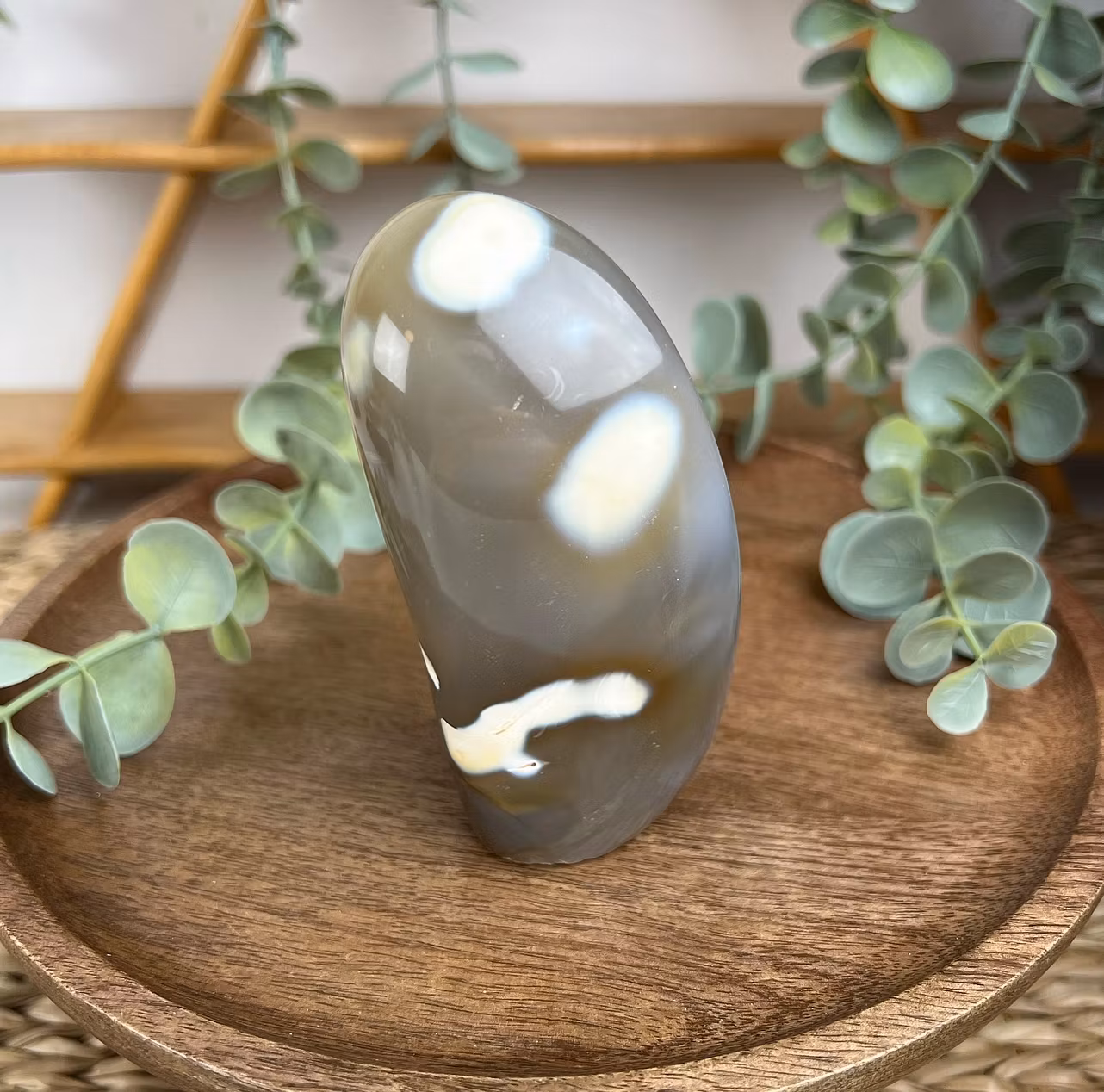 På bilden ser ni en friform av Orca agat (späckhuggaragat)