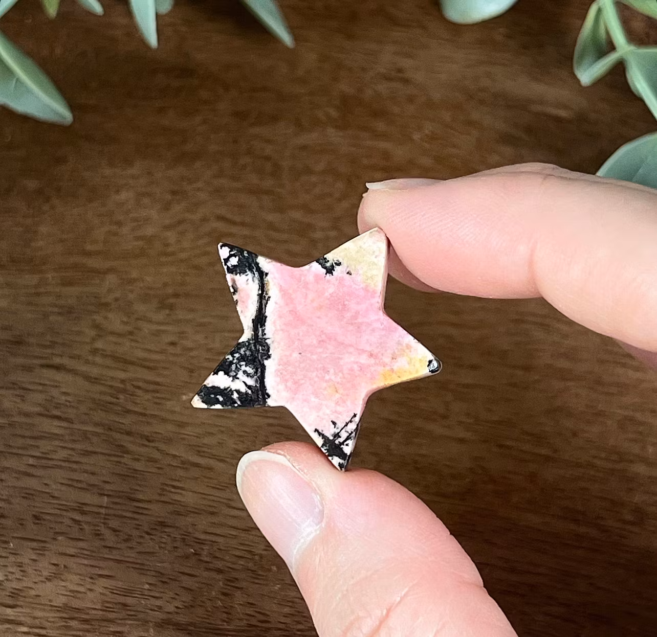 På bilden ser ni stjärnor av Rhodonit av god kvalitét