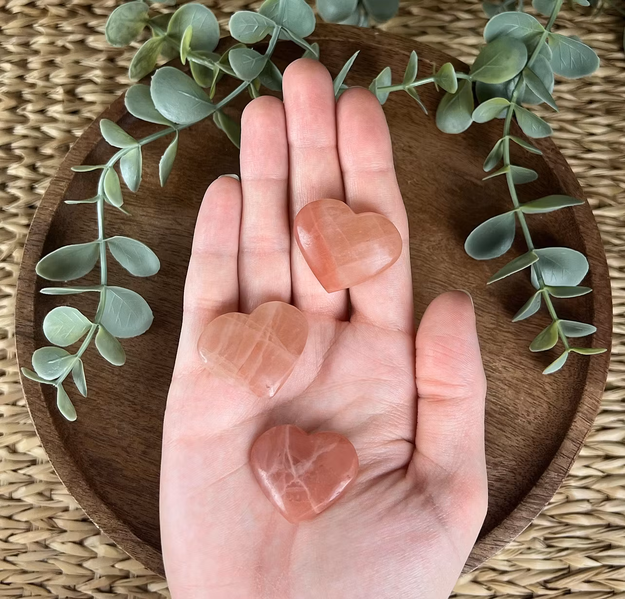 På bilden ser ni hjärtan av Rhodonit av god kvalitét