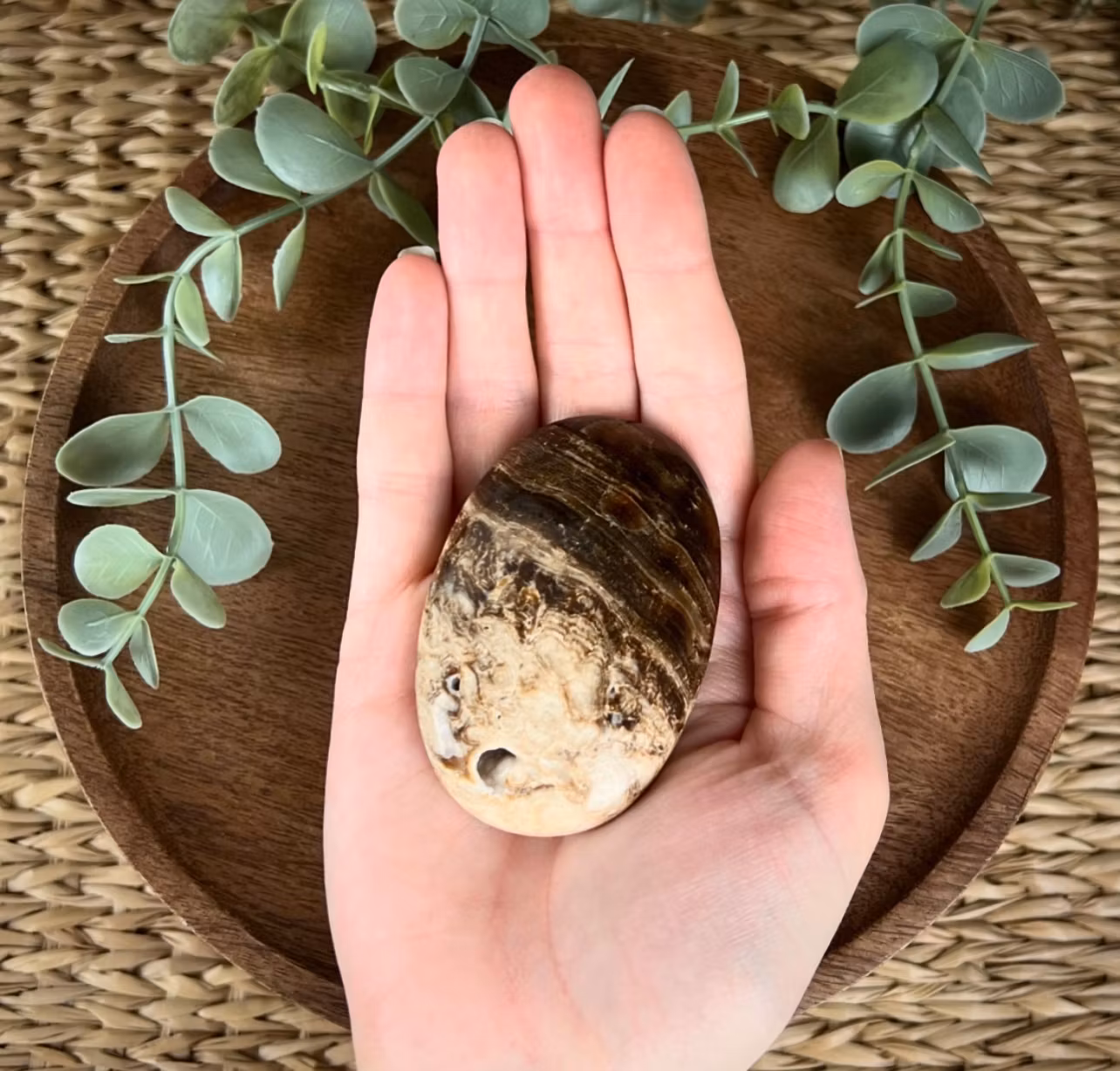 På bilden ser ni en meditationssten (handsten) av Chokladkalcit