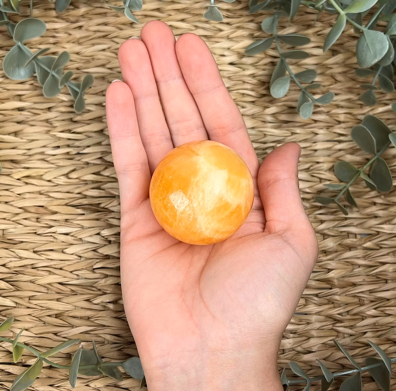 På bilden ser ni ett klot av Orange Kalcit