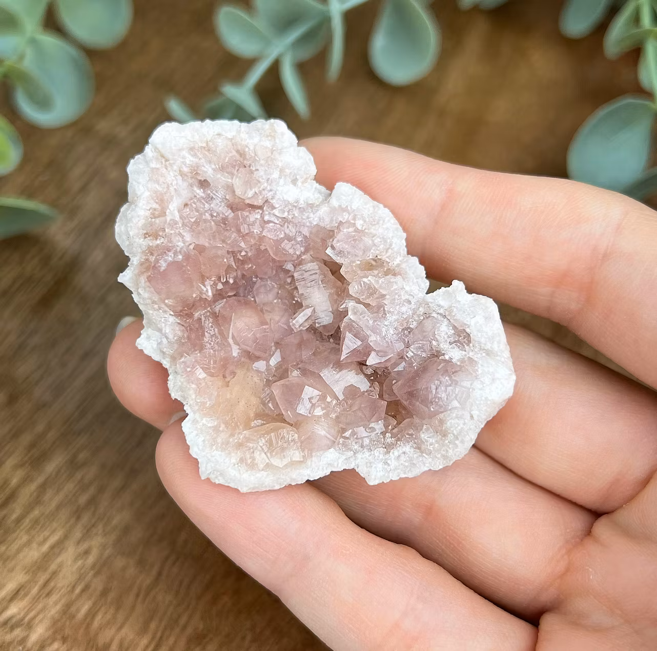 På bilden ser ni en bit av en geod/kluster av Rosa Ametist