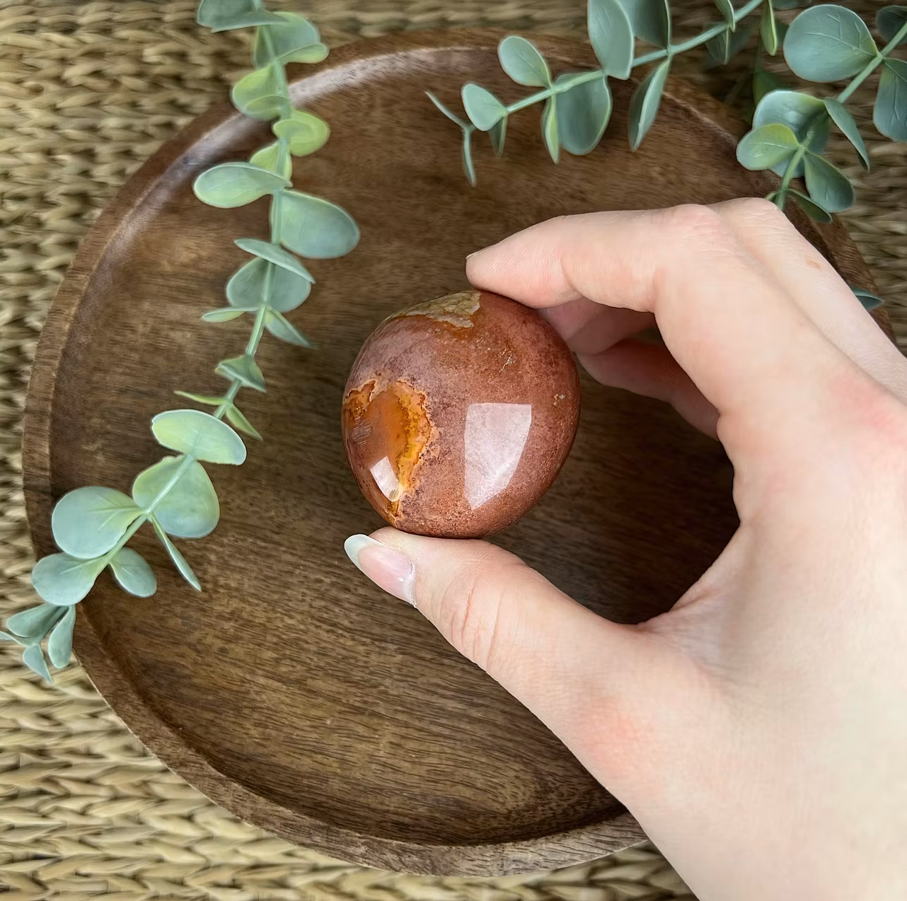 På bilden ser ni en meditationssten/handsten av Polykromjaspis