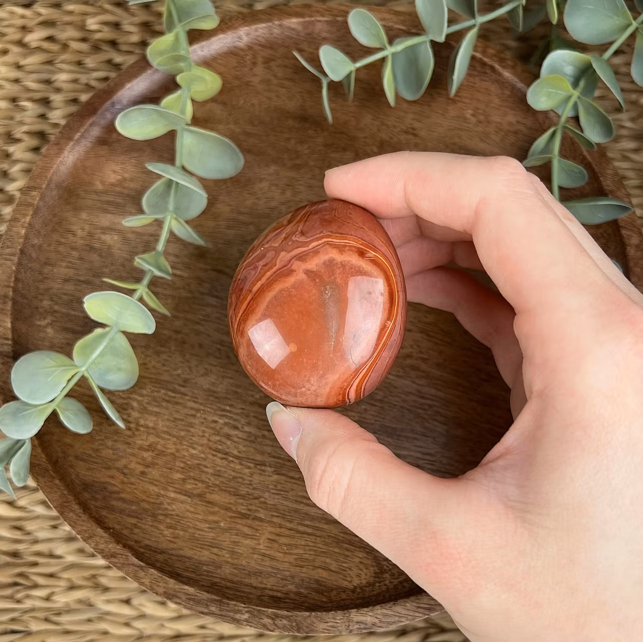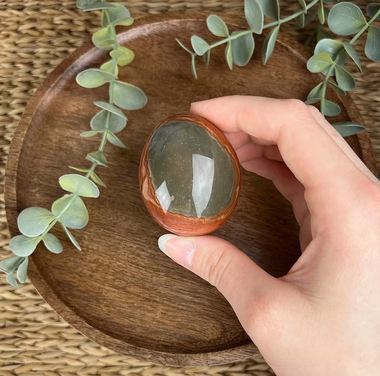 På bilden ser ni en meditationssten/handsten av Polykromjaspis