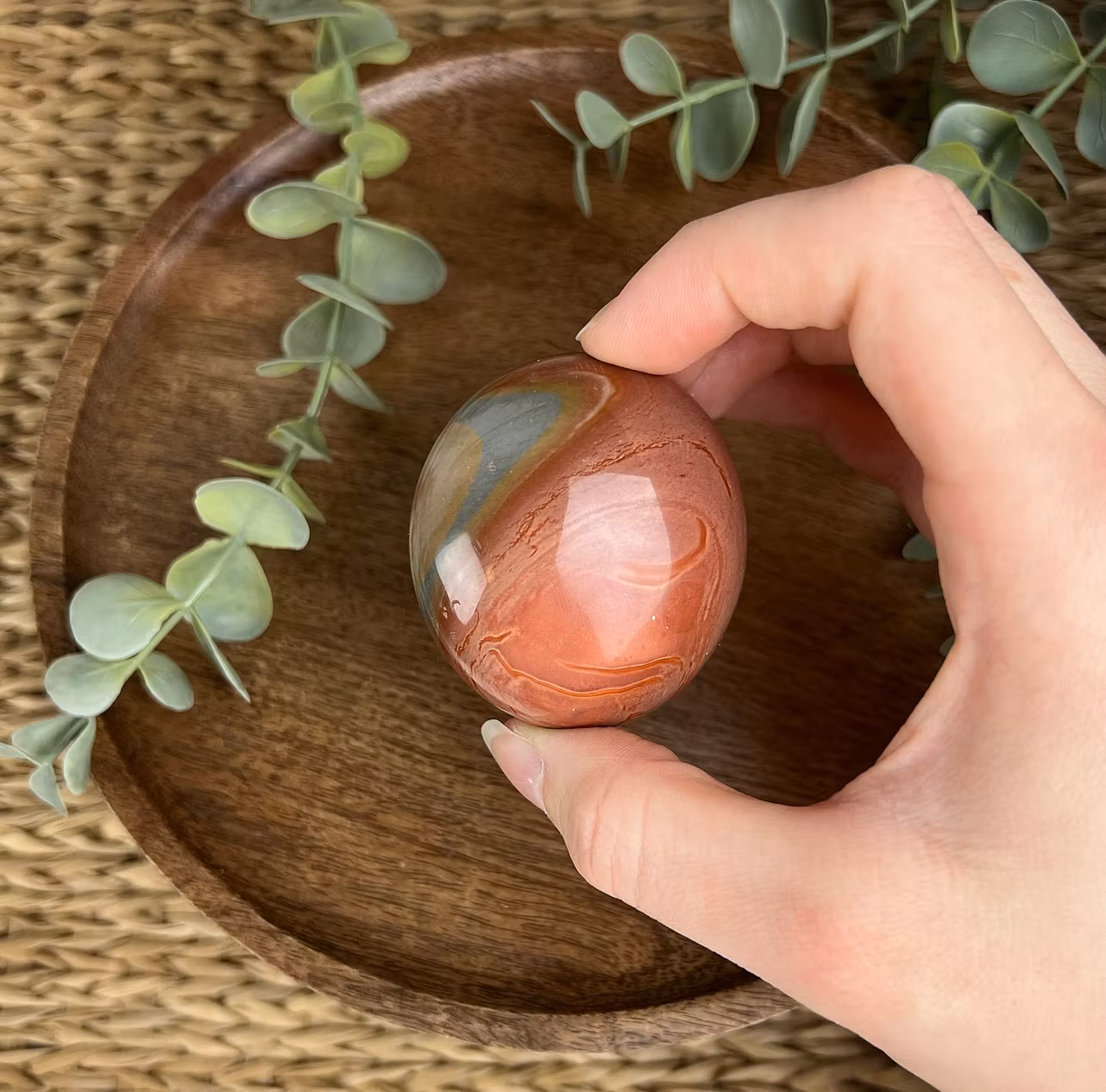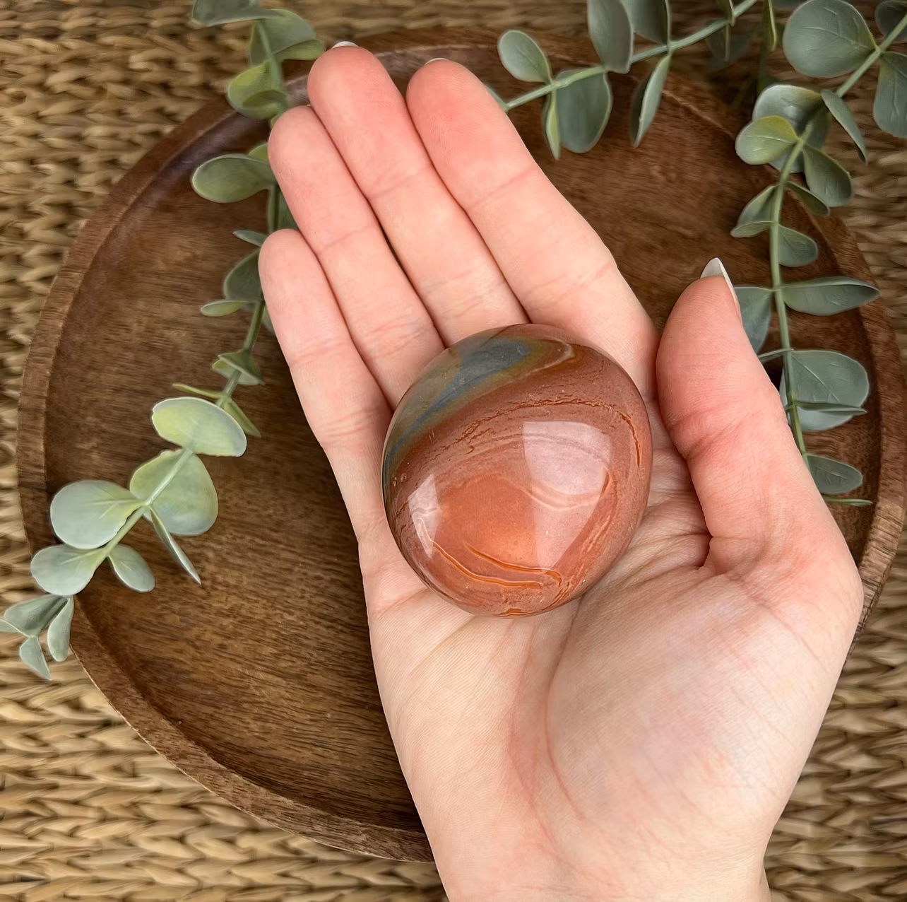 På bilden ser ni en meditationssten/handsten av Polykromjaspis