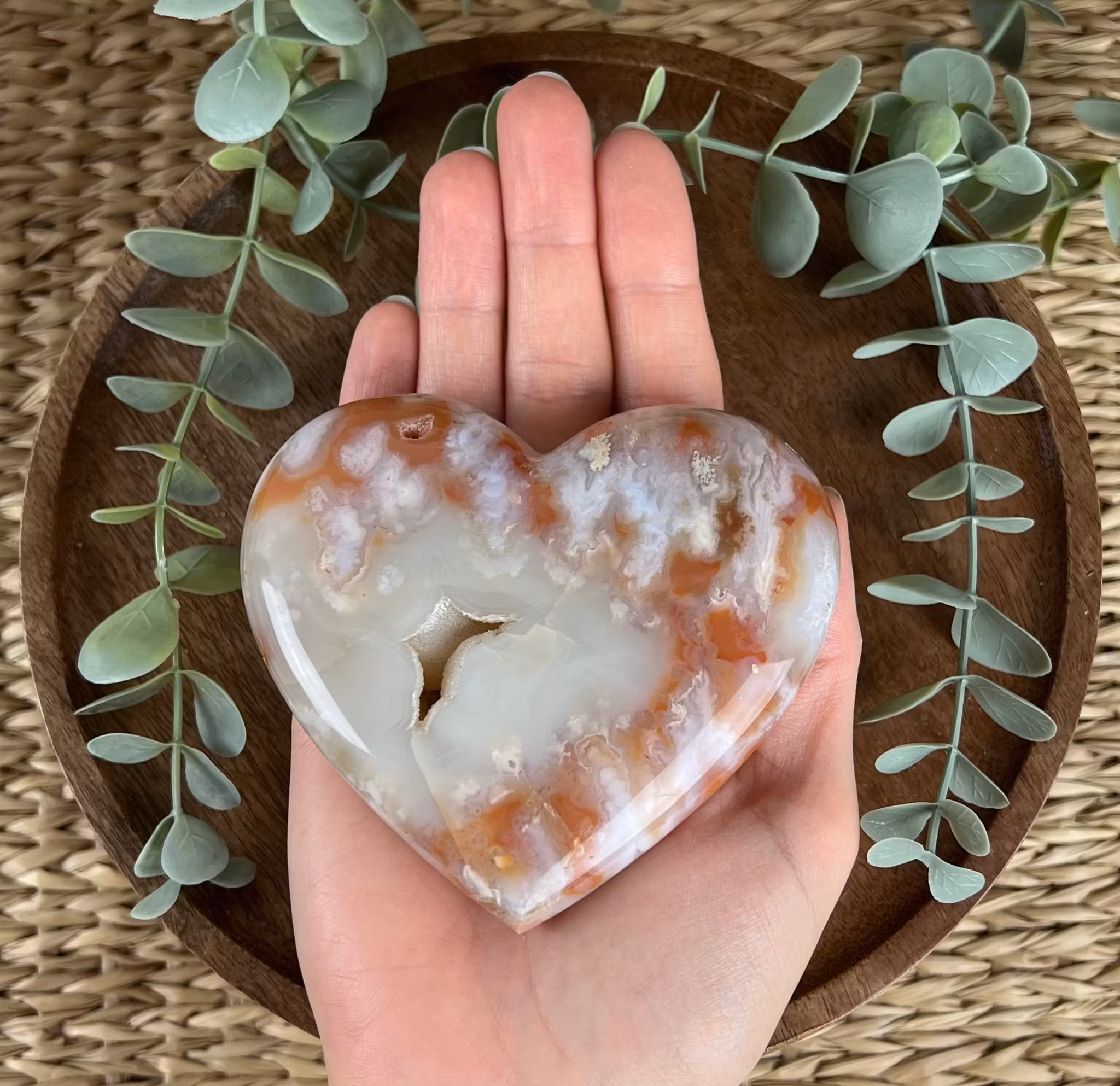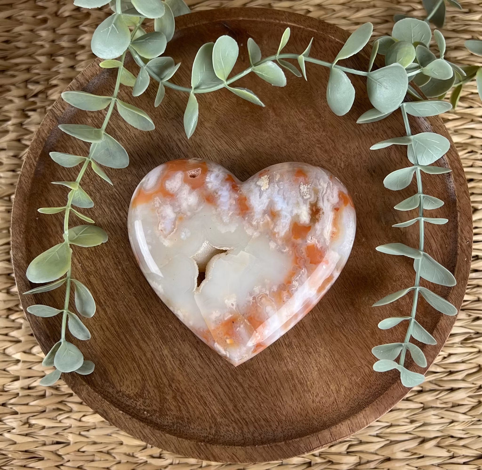 På bilden ser ni ett hjärta av Karneol