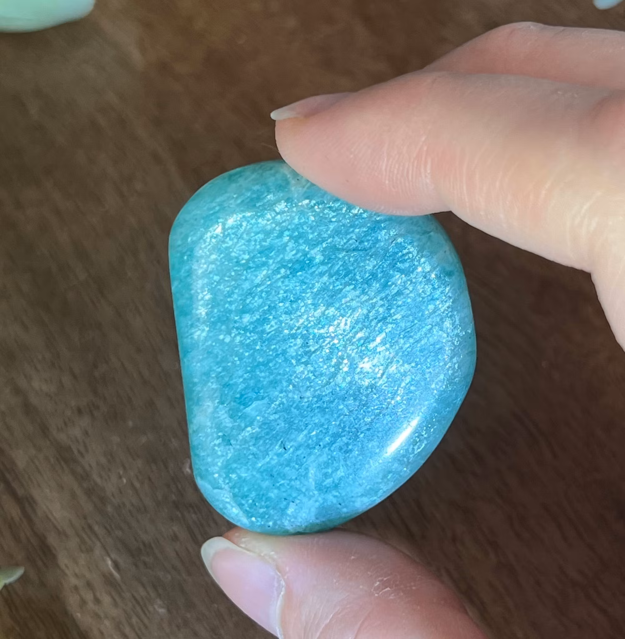 PĂ„ bilden ser ni en Platta av Amazonit đ