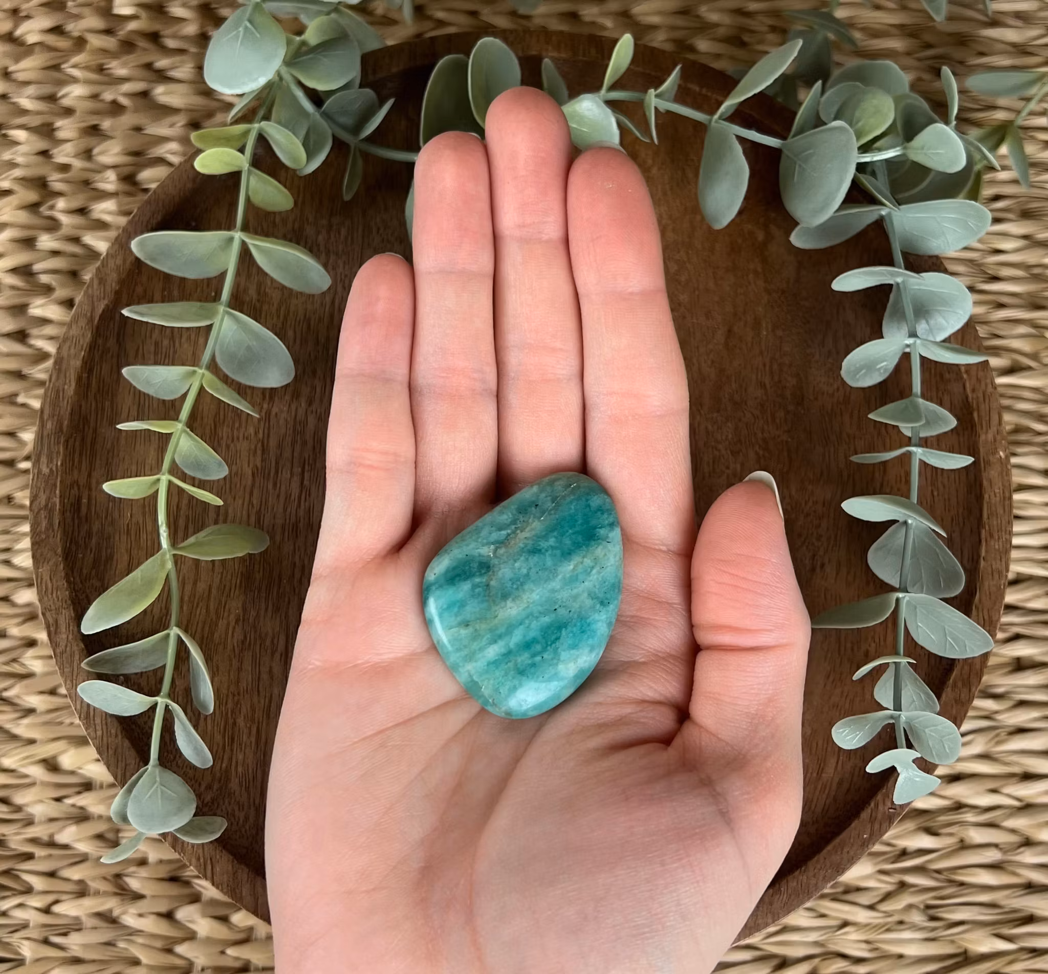 PĂ„ bilden ser ni en Platta av Amazonit đ