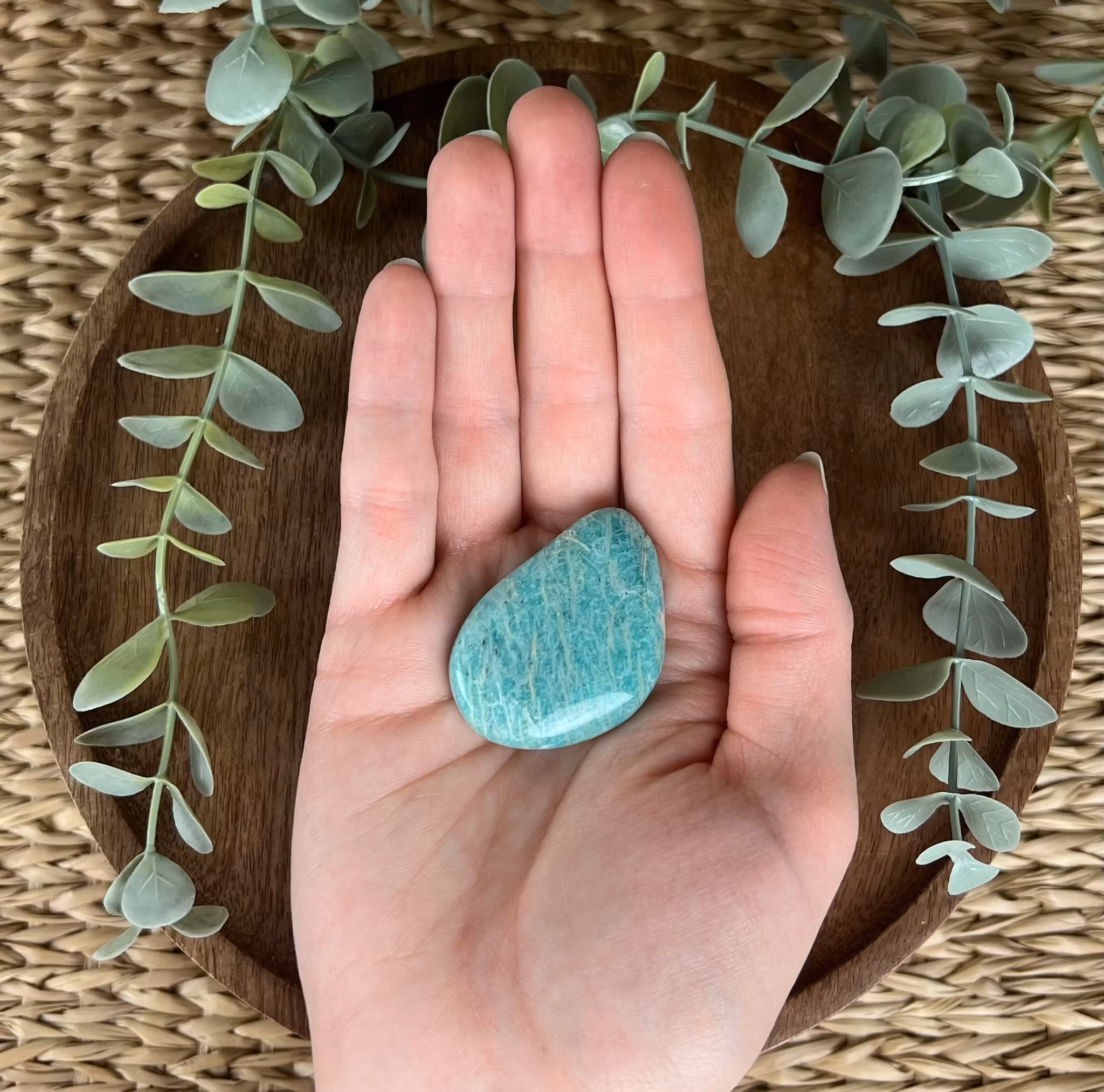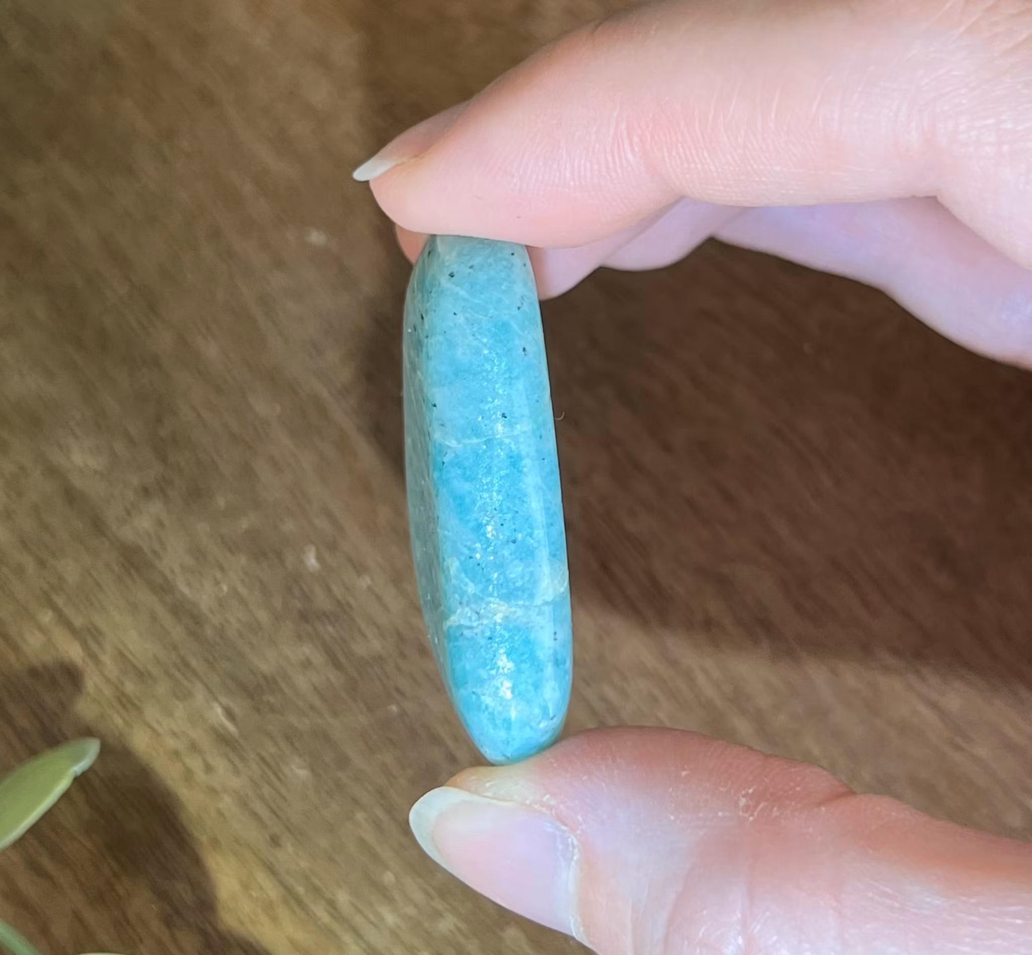 PĂ„ bilden ser ni en Platta av Amazonit đ