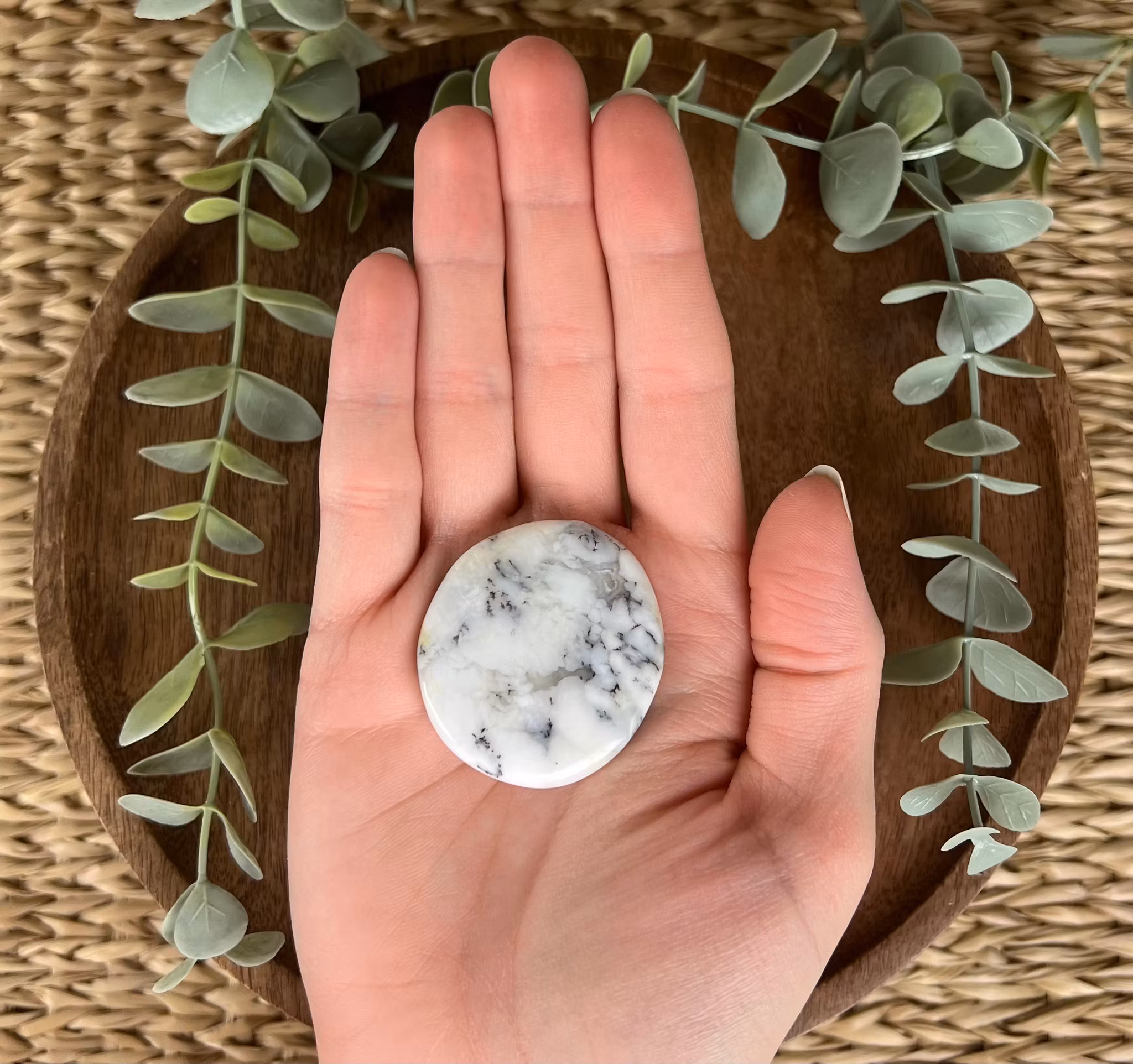 PĂ„ bilden ser ni en Platta av Dendritopal/kalcedon đ€