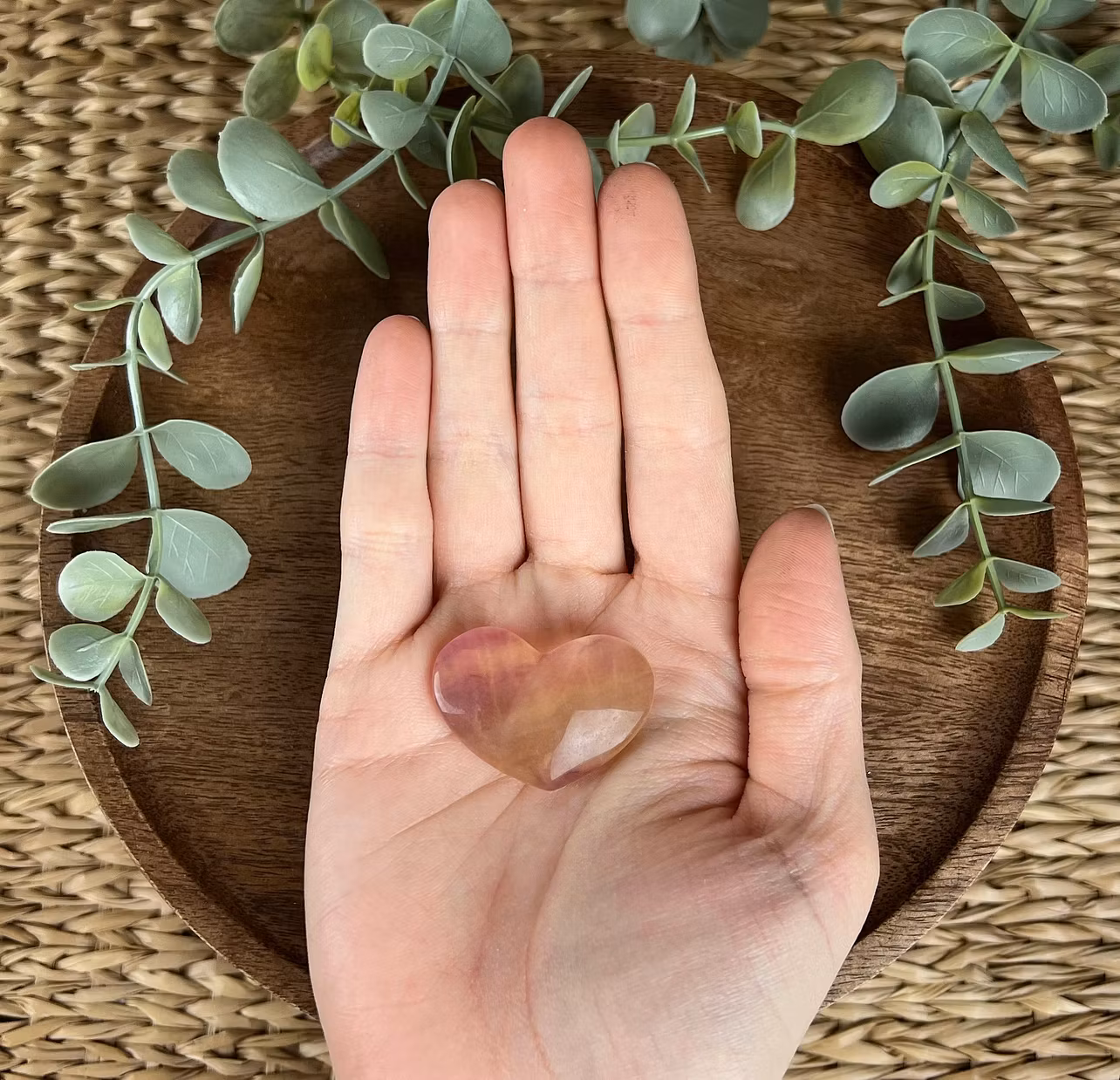 På bilden ser ni ett mindre hjärta av Fluorit (just denna pastelliga typ av fluorit kallas för godisfluorit/candyfluorit) 💕