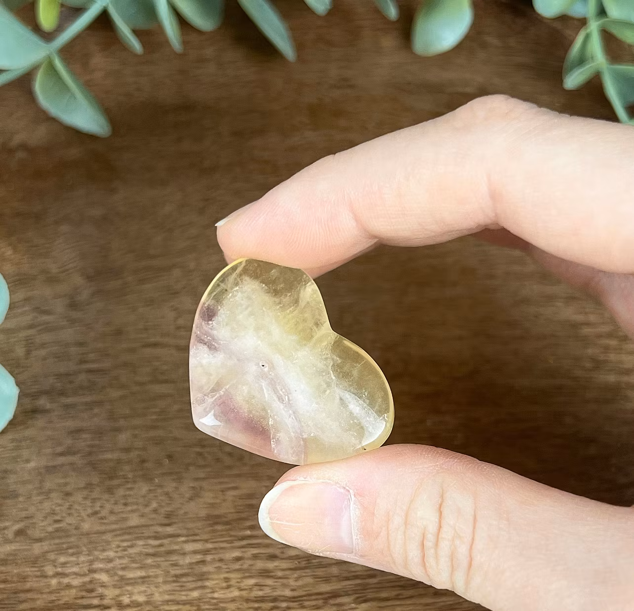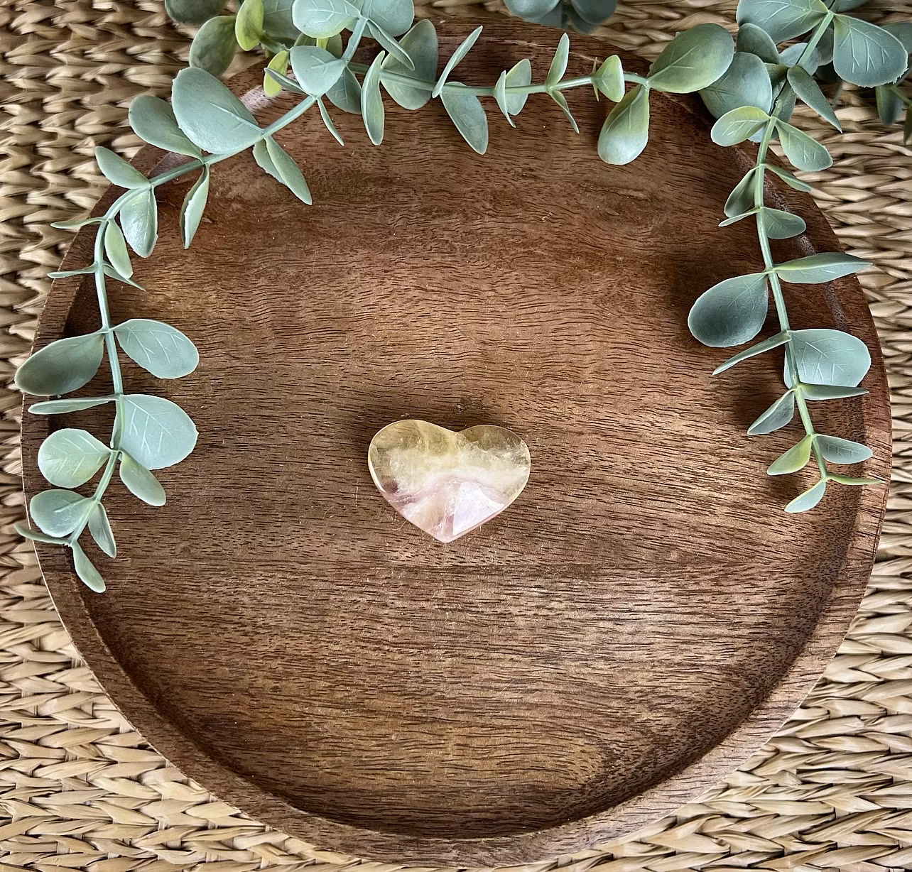 På bilden ser ni ett mindre hjärta av Fluorit (just denna pastelliga typ av fluorit kallas för godisfluorit/candyfluorit) 💕