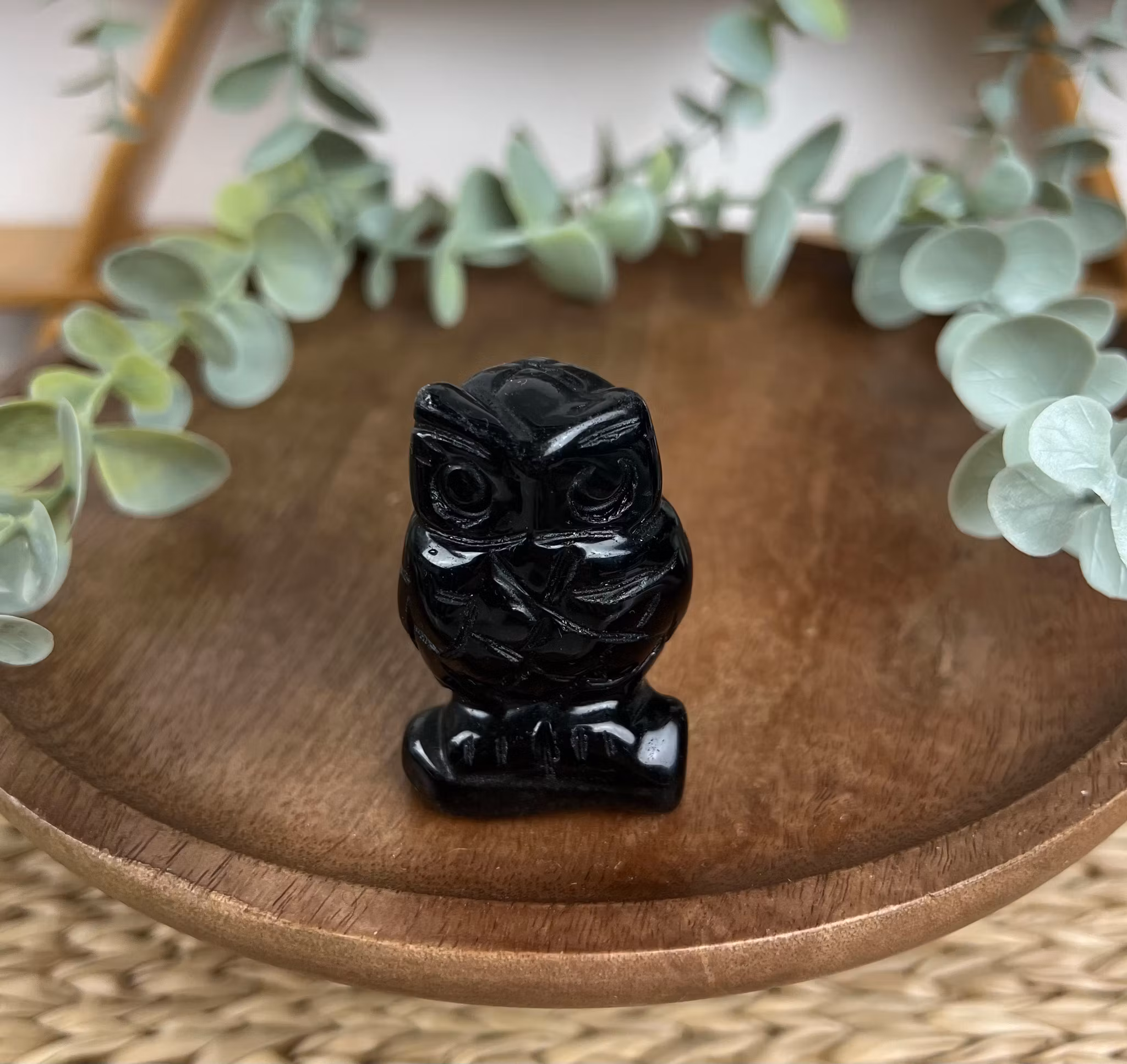 PĂ„ bilden ser ni en Uggla av Svart Obsidian đ€
