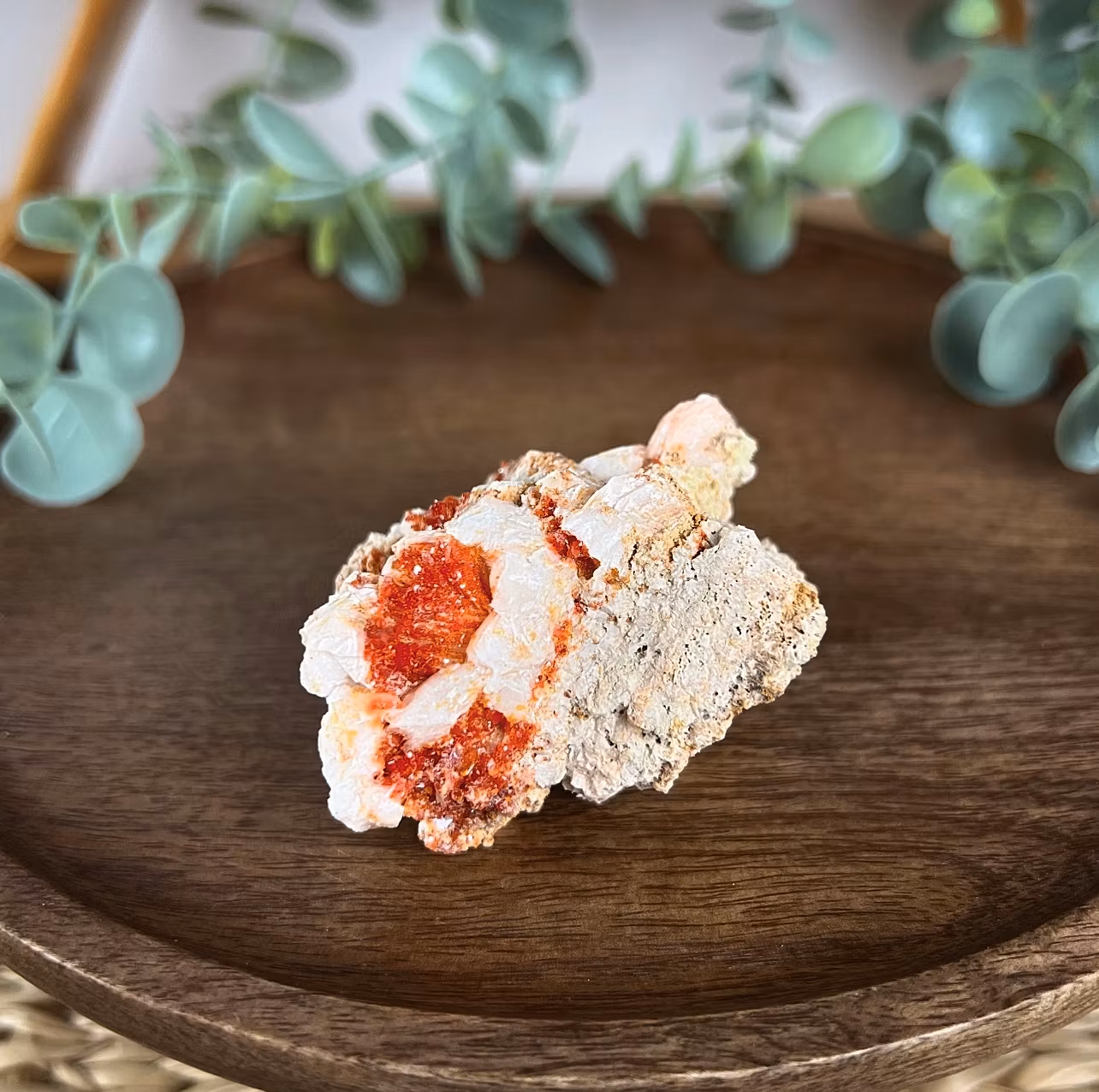 På bilden ser ni en rå bit/kluster av Vanadinit