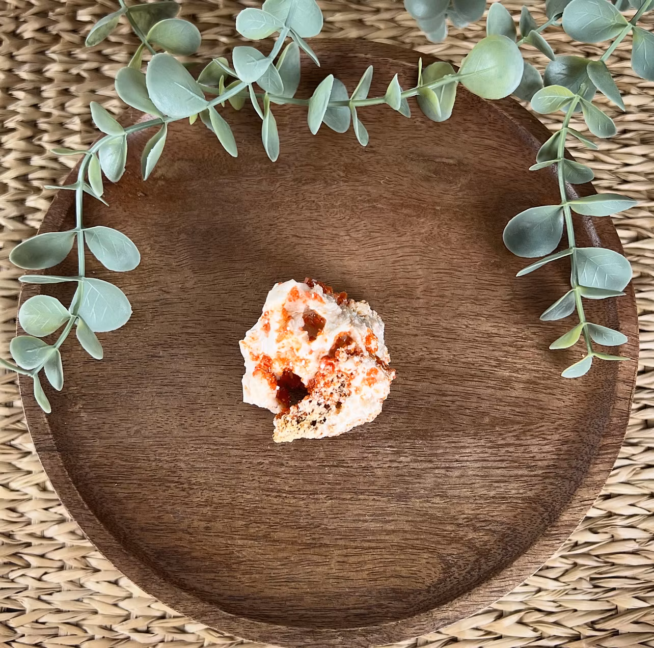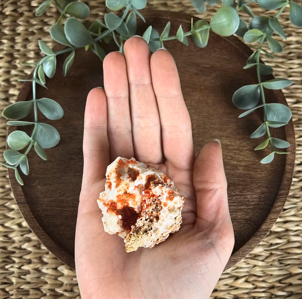 På bilden ser ni en rå bit/kluster av Vanadinit