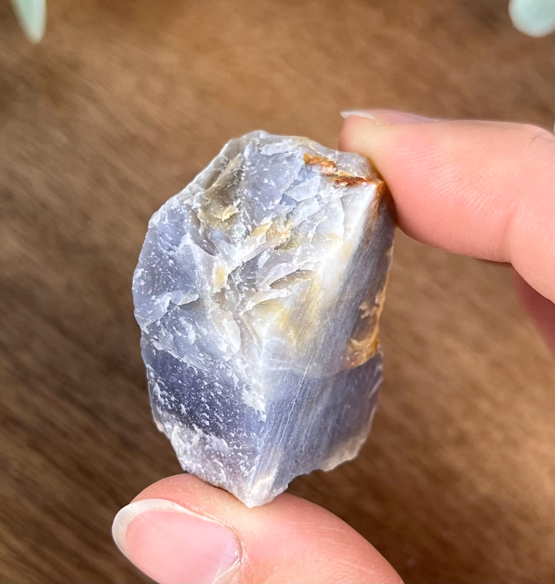 På bilden ser ni en rå bit av Violett Kalcedon