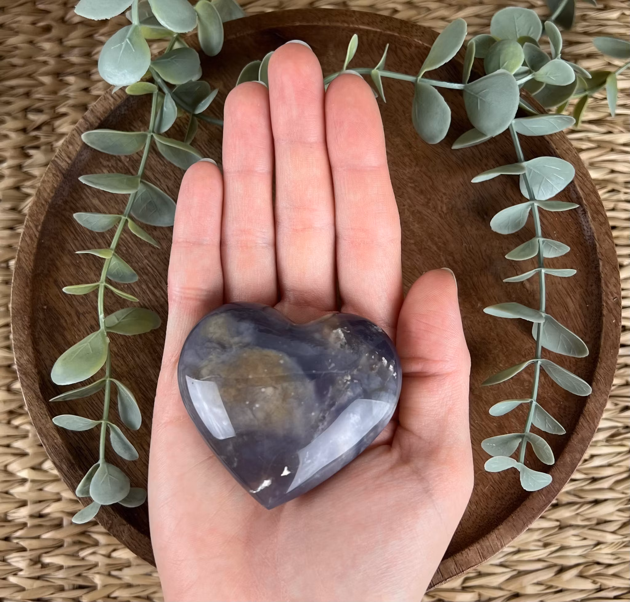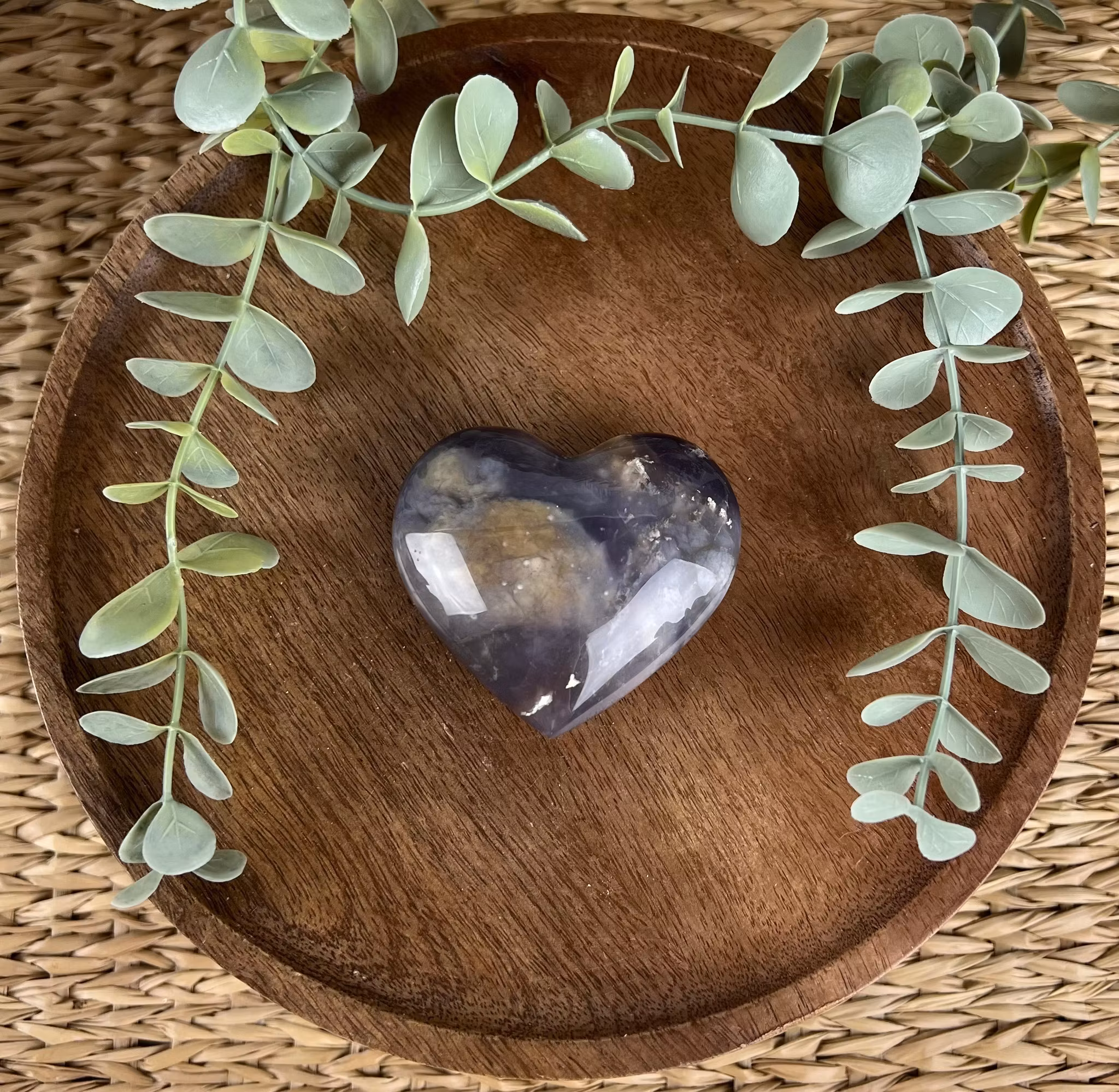 På bilden ser ni ett hjärta av Violett Kalcedon