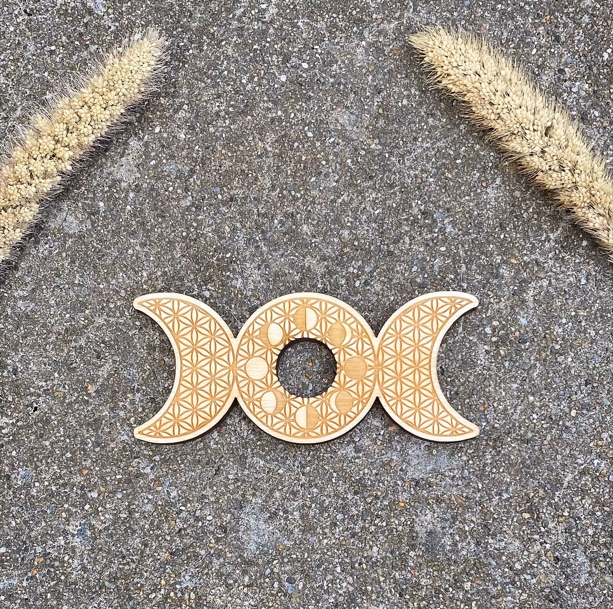 På bilden ser ni ett klotställ i form av en trippelmåne med månfaser på.