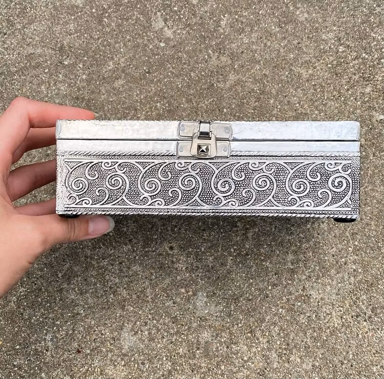 Detta är alltså en förbeställning av ett silverfägat skrin med mönstret av en lotus och det innebär att när du lägger en beställning på den så kommer det dröja 1-2 veckor innan den anlänt hos mig och är redo för att skickas ut. Genom att förbeställa en så är du garanterad att få en med nästa order 🥰