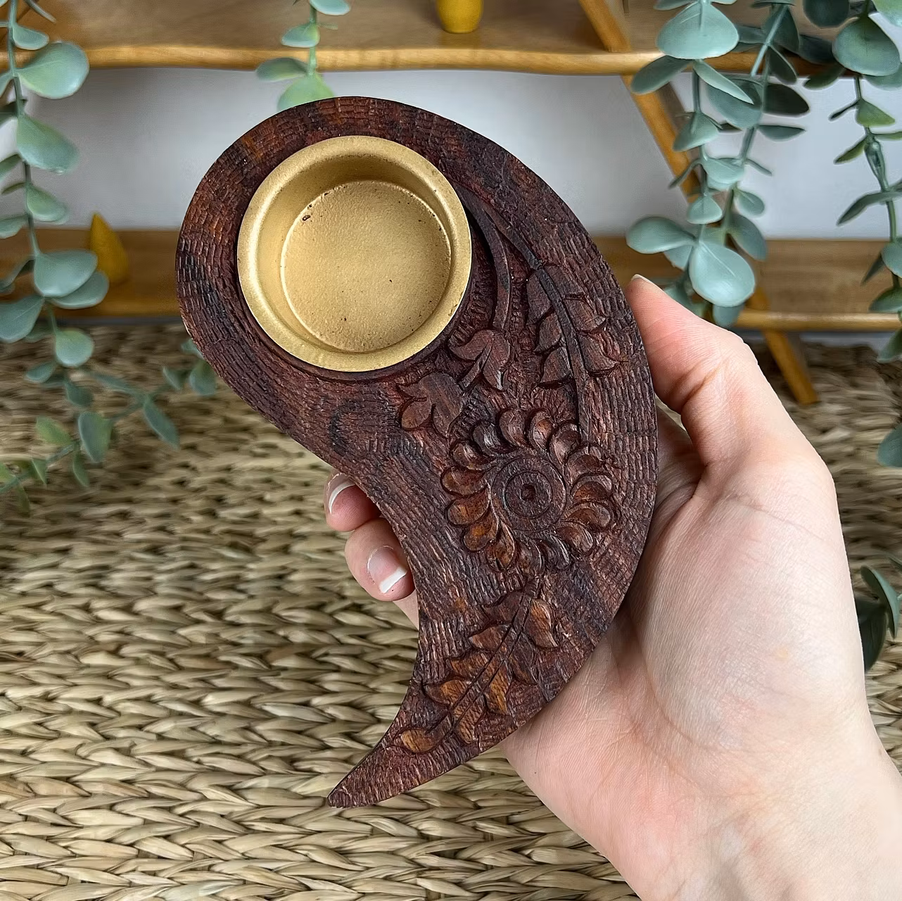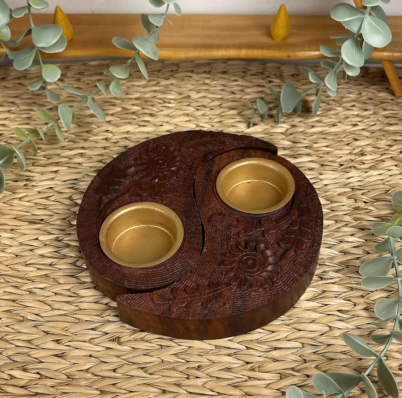 Ljushållare i trä yin/yang