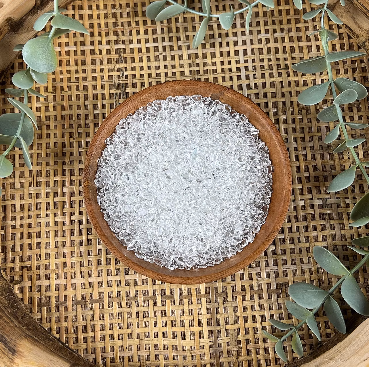 1 liten påse på 50 gram med stenchips i bergkristall med en hög och klar kvalitet