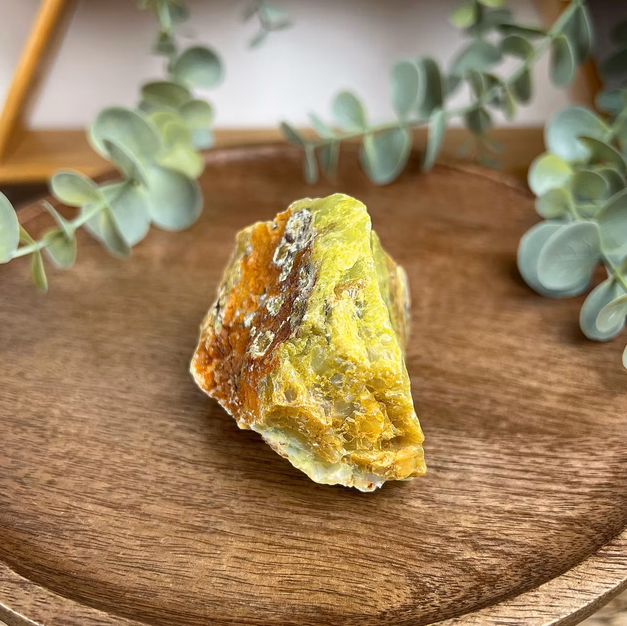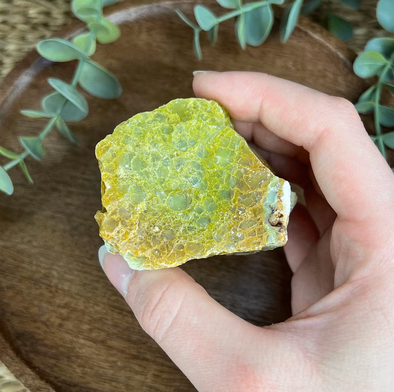 På bilden ser ni en rå bit av Grön Opal