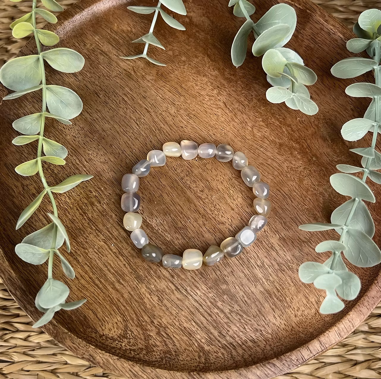 Stenarmband av grå kalcedon (nuggets) ca. 8 mm