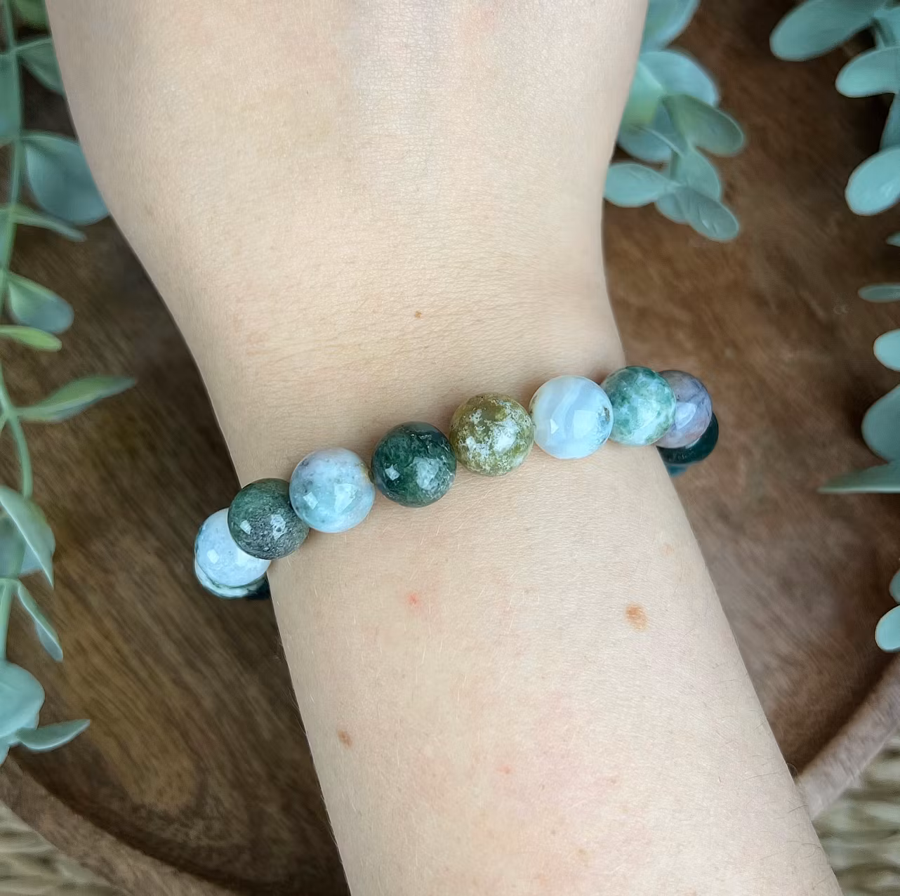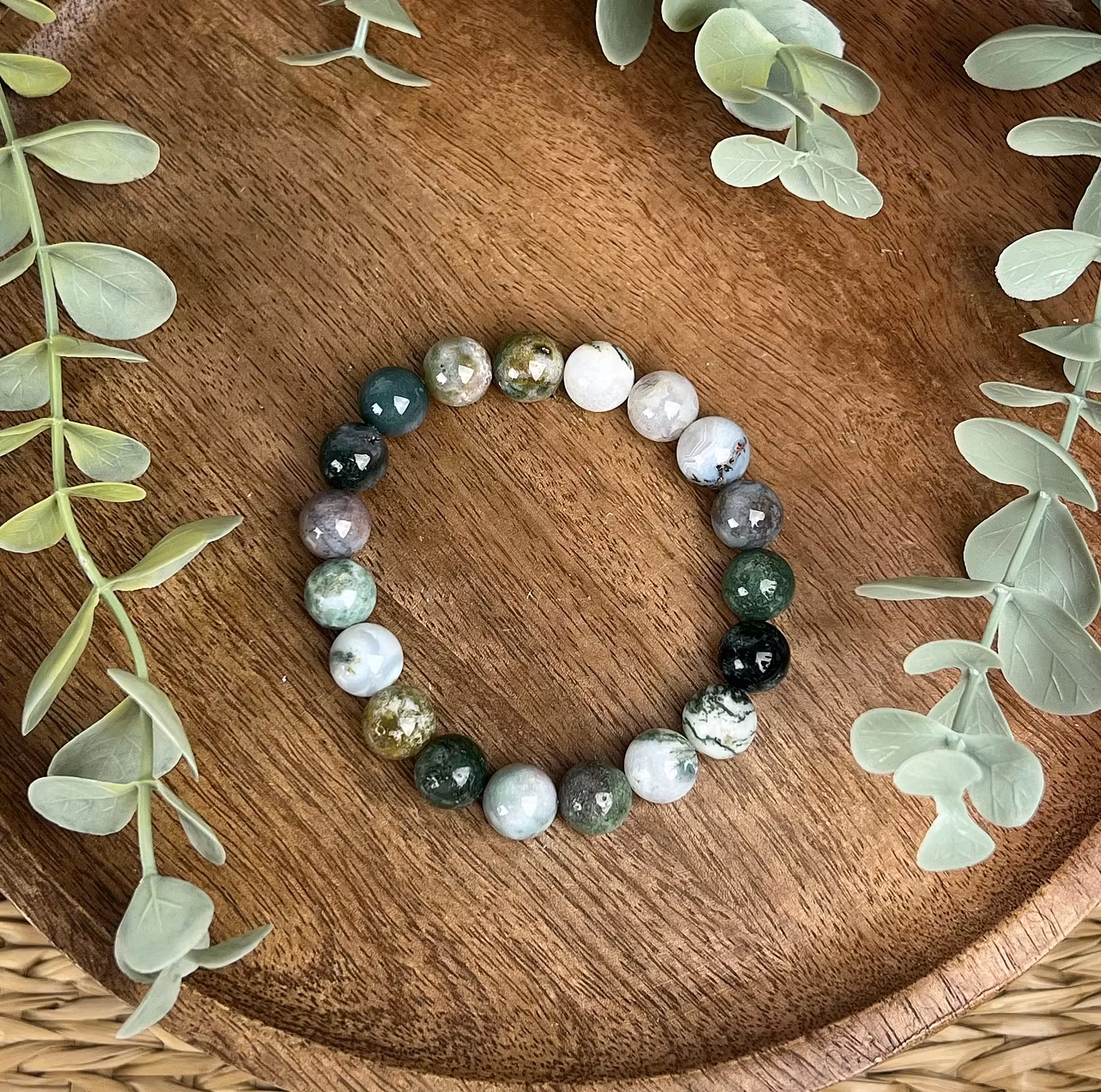 På bilden ser ni ett stenarmband av Mossagat endast innehållandes stenpärlor (inga mellandelar eller berlocker) 🤗