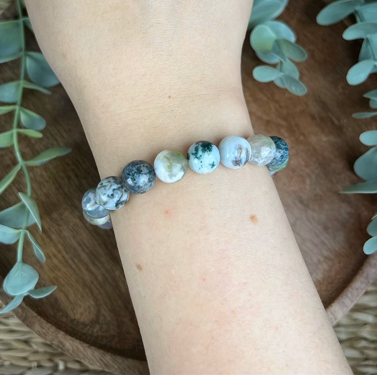 På bilden ser ni ett stenarmband av Mossagat endast innehållandes stenpärlor (inga mellandelar eller berlocker) 🤗