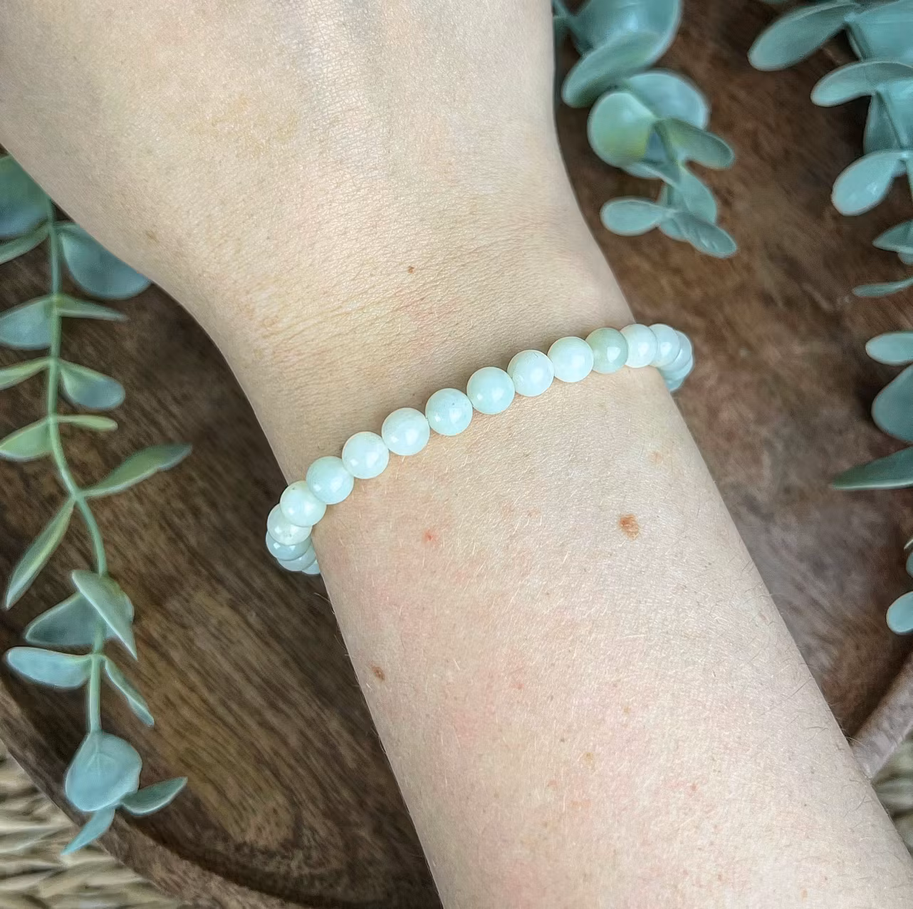 På bilden ser ni ett stenarmband av Serpentin/New jade endast innehållandes stenpärlor (inga mellandelar eller berlocker) 🤗