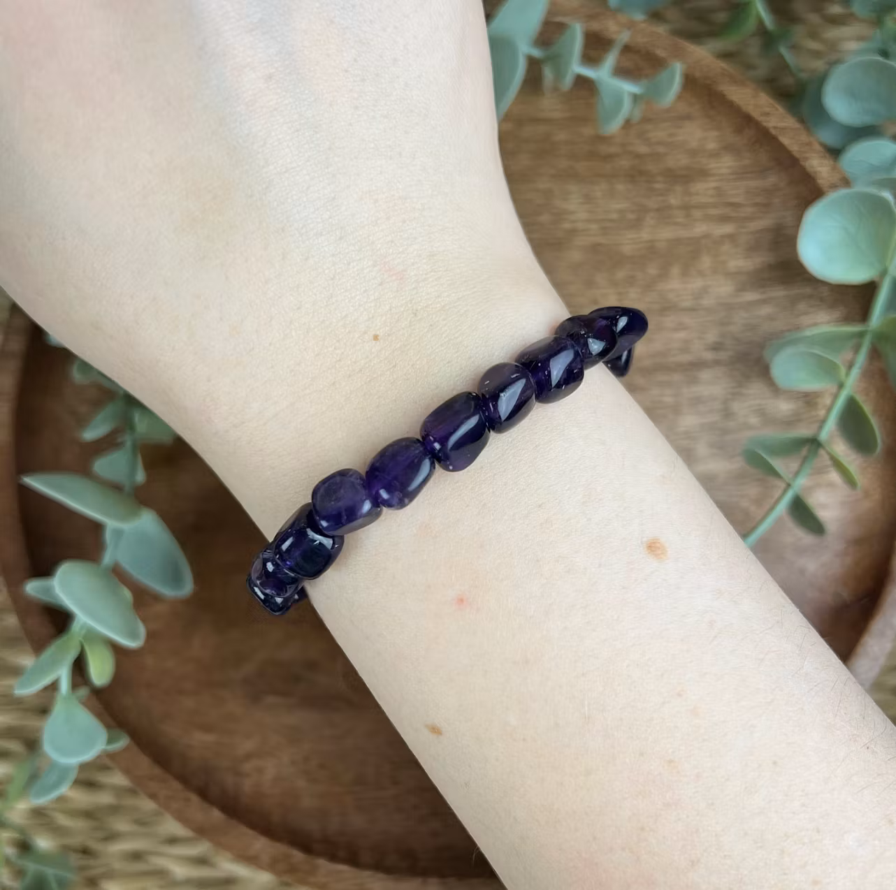 På bilden ser ni ett stenarmband av Ametist endast innehållandes stenpärlor (inga mellandelar eller berlocker) 🤗