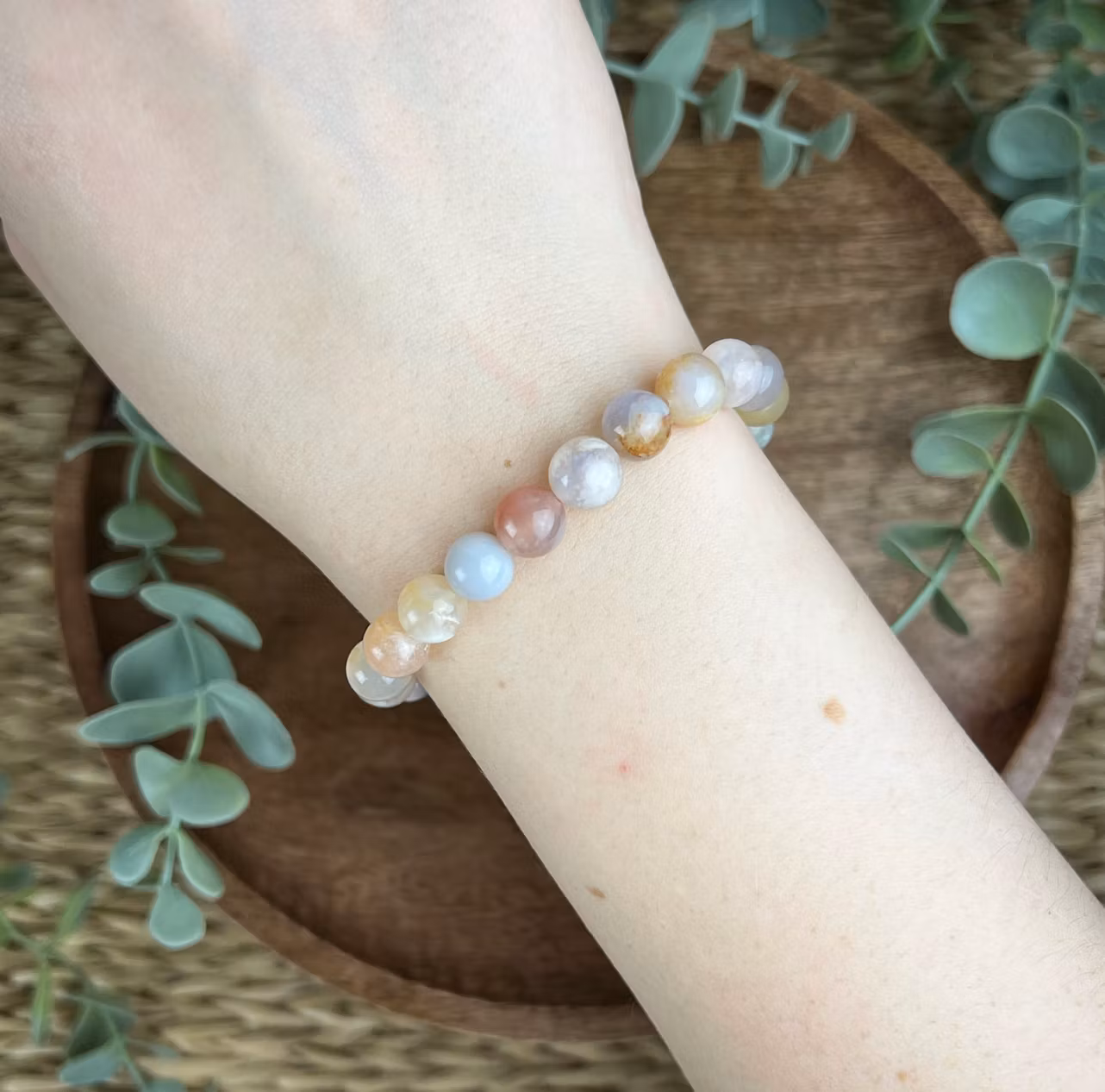 På bilden ser ni ett stenarmband av Blomsteragat endast innehållandes stenpärlor (inga mellandelar eller berlocker) 🤗
