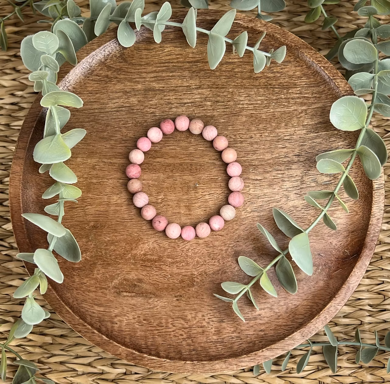 På bilden ser ni ett stenarmband av matt Rhodonit endast innehållandes stenpärlor (inga mellandelar eller berlocker) 🤗