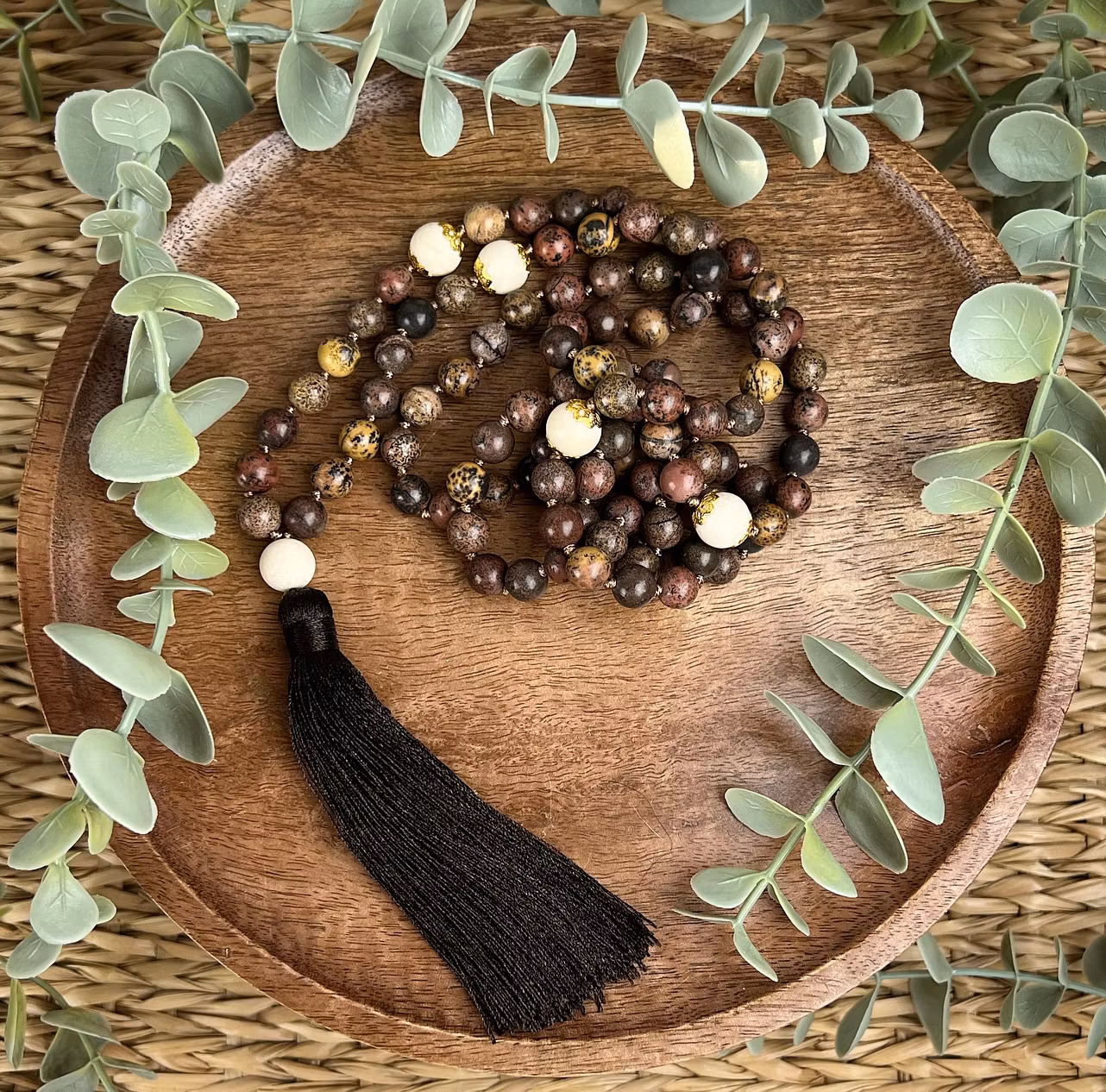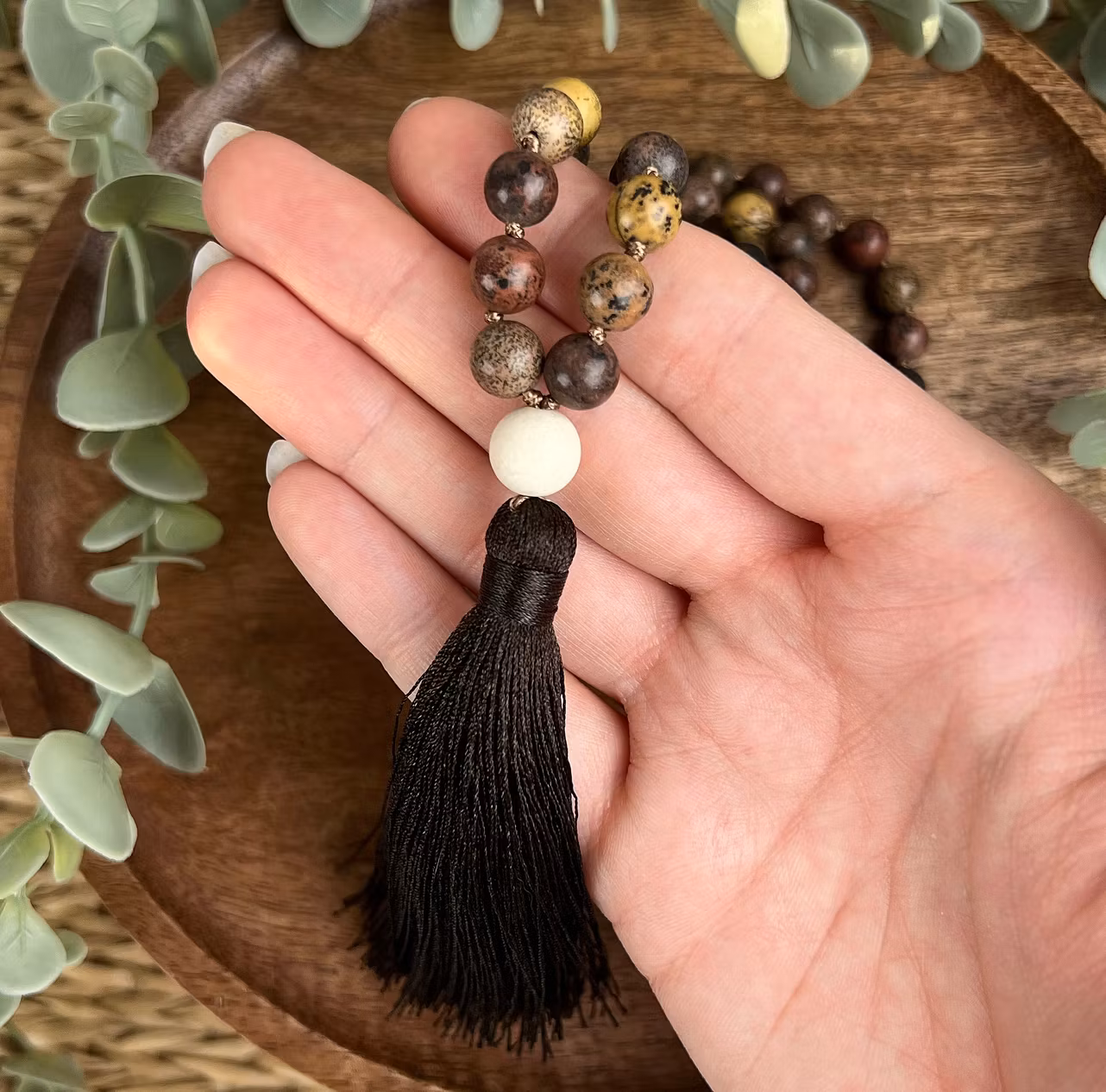 Mala halsband (handknutet) Dendritjaspis & Vit matt jaspis