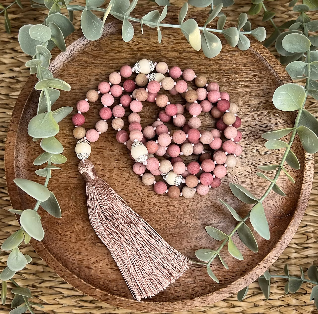 Mala halsband (handknutet) Matt Rhodonit & Vit matt jaspis