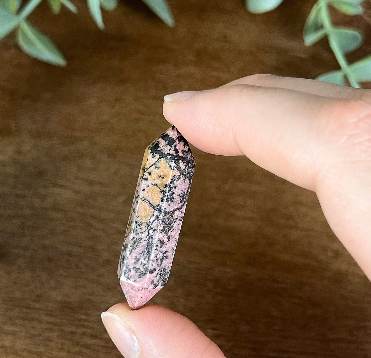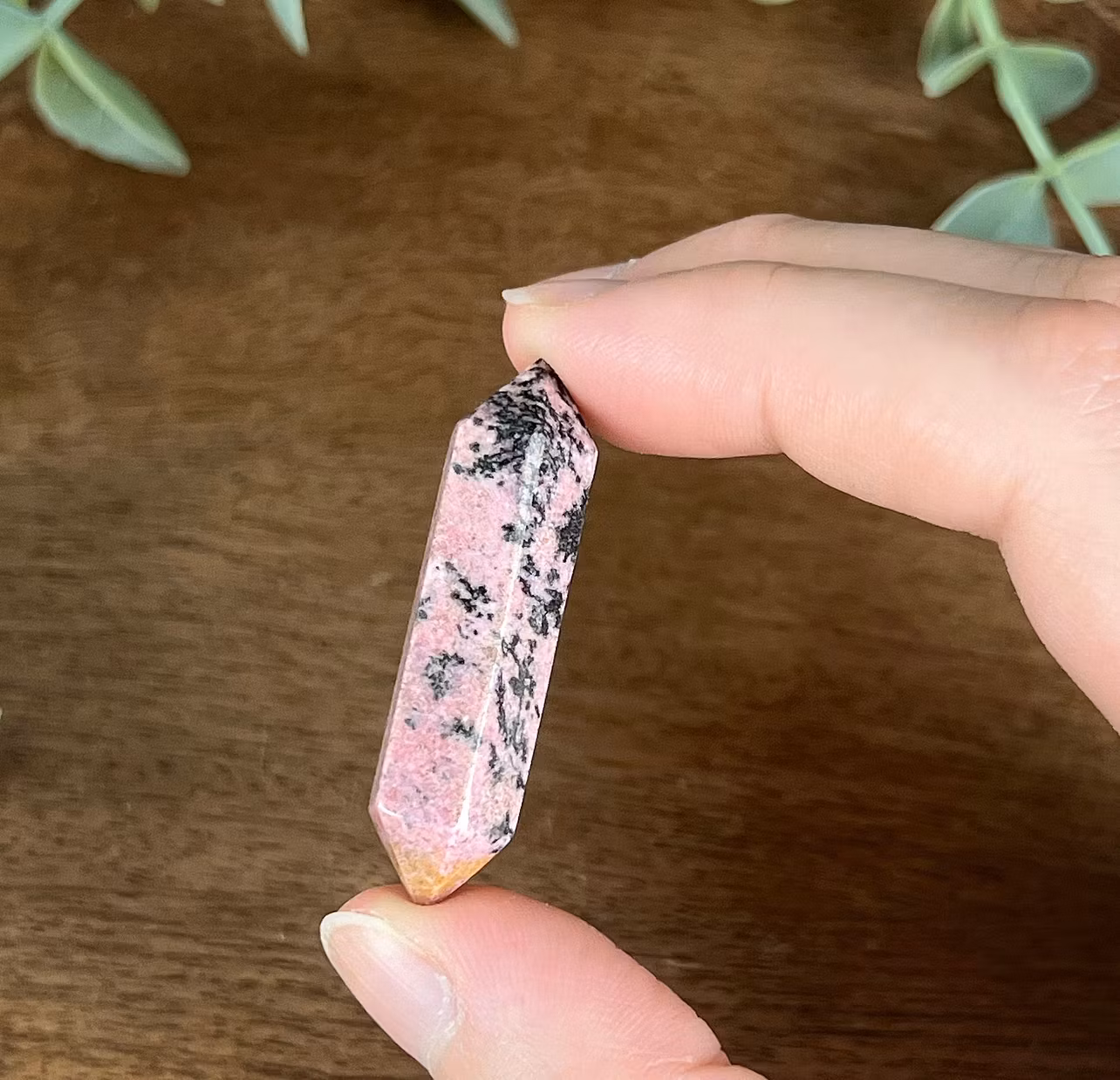 På bilden ser ni dubbelterminerade spetsar av Rhodonit av god kvalitét