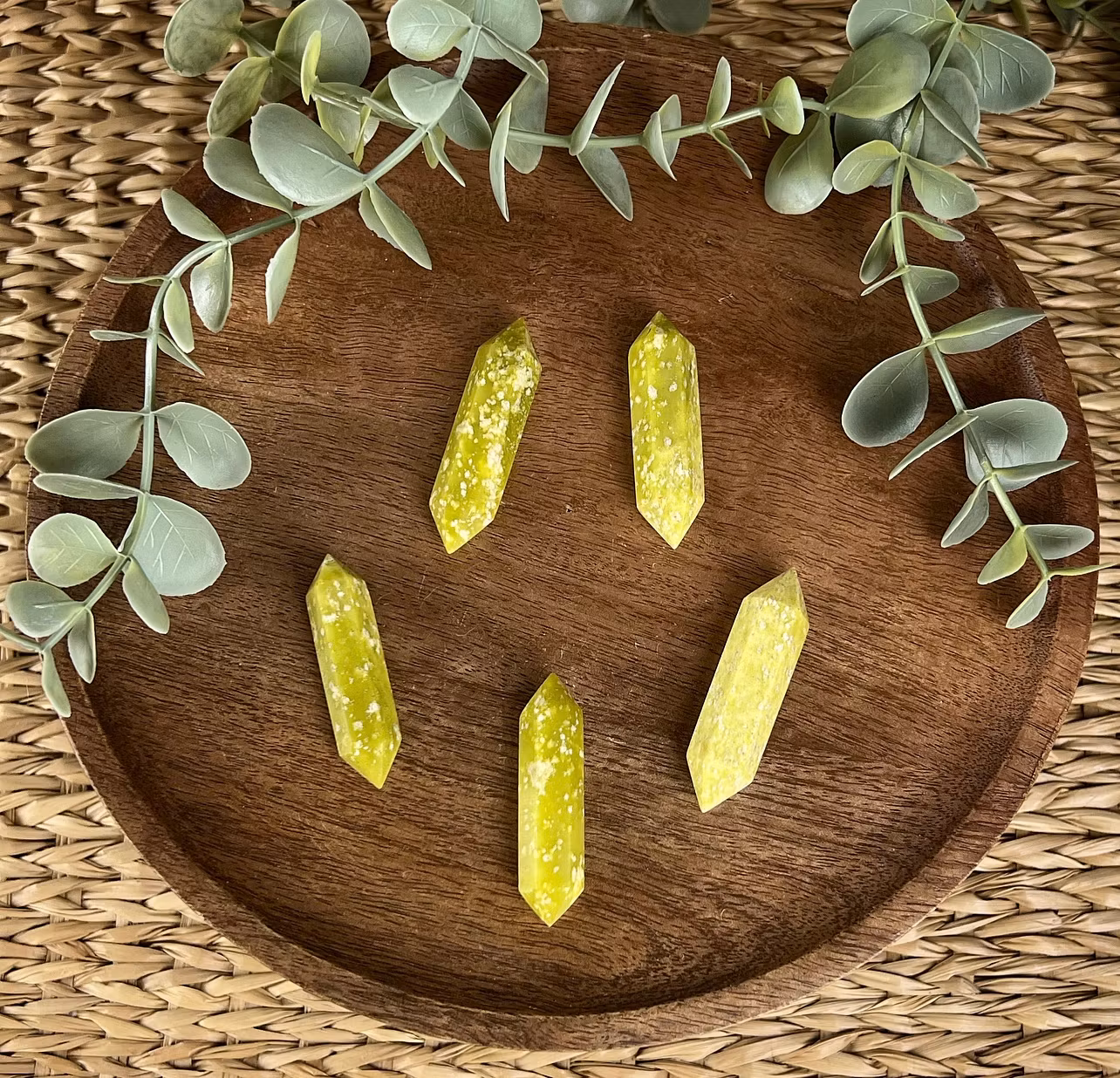 På bilden ser ni dubbelterminerade spetsar av Serpentin av god kvalitét