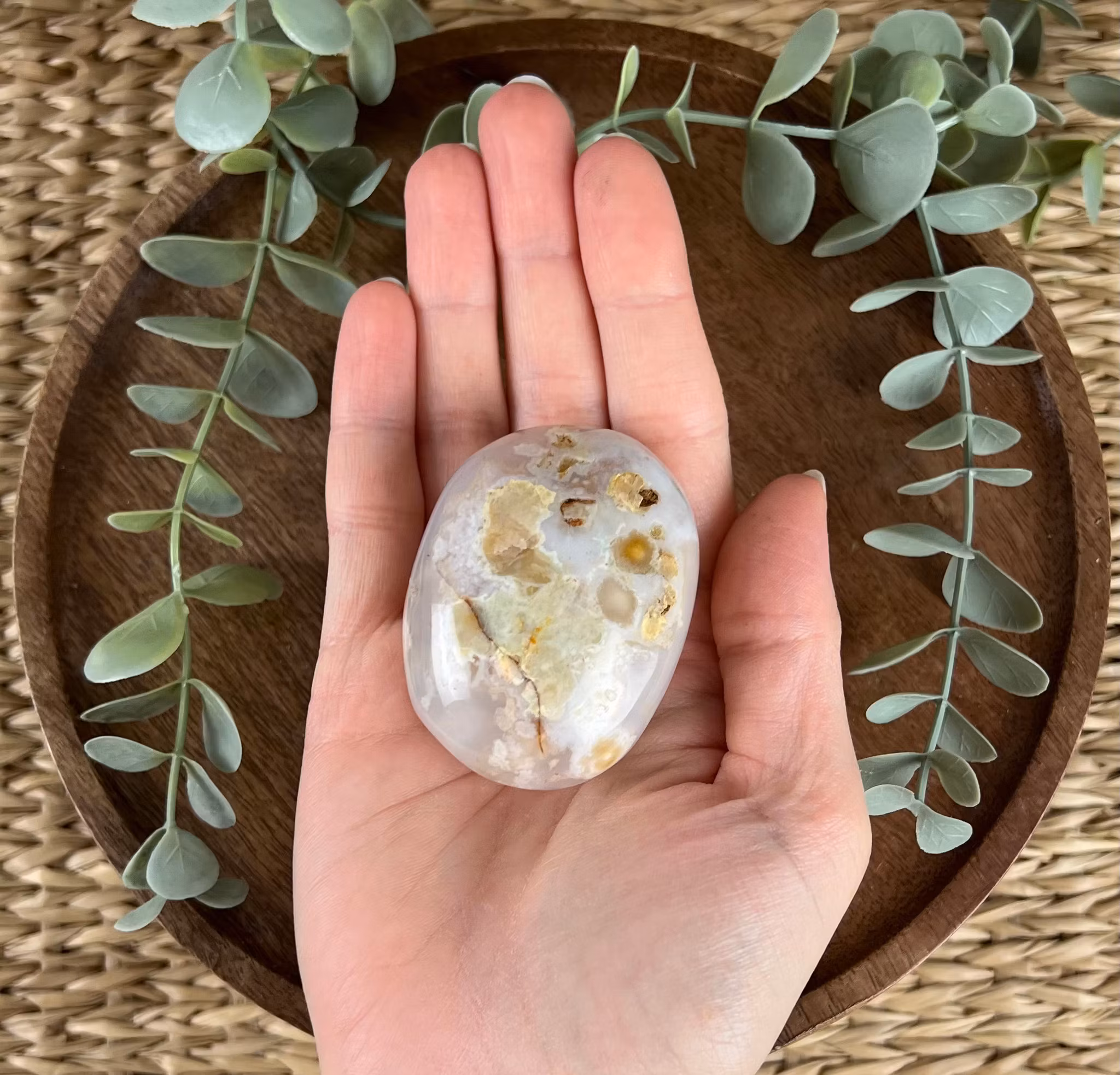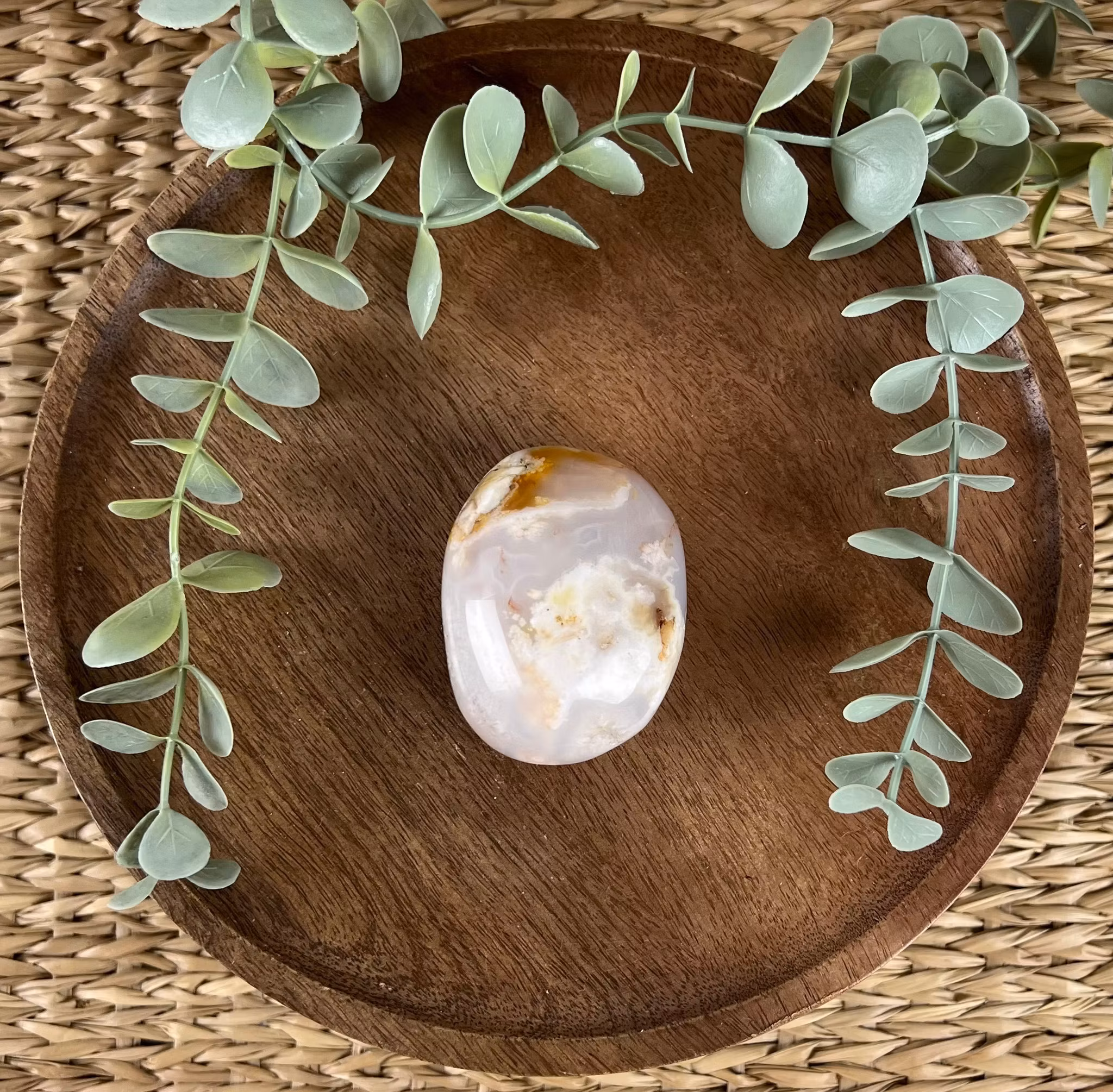 PĂ„ bilden ser ni en meditationssten (handsten) av Blomsteragat đž