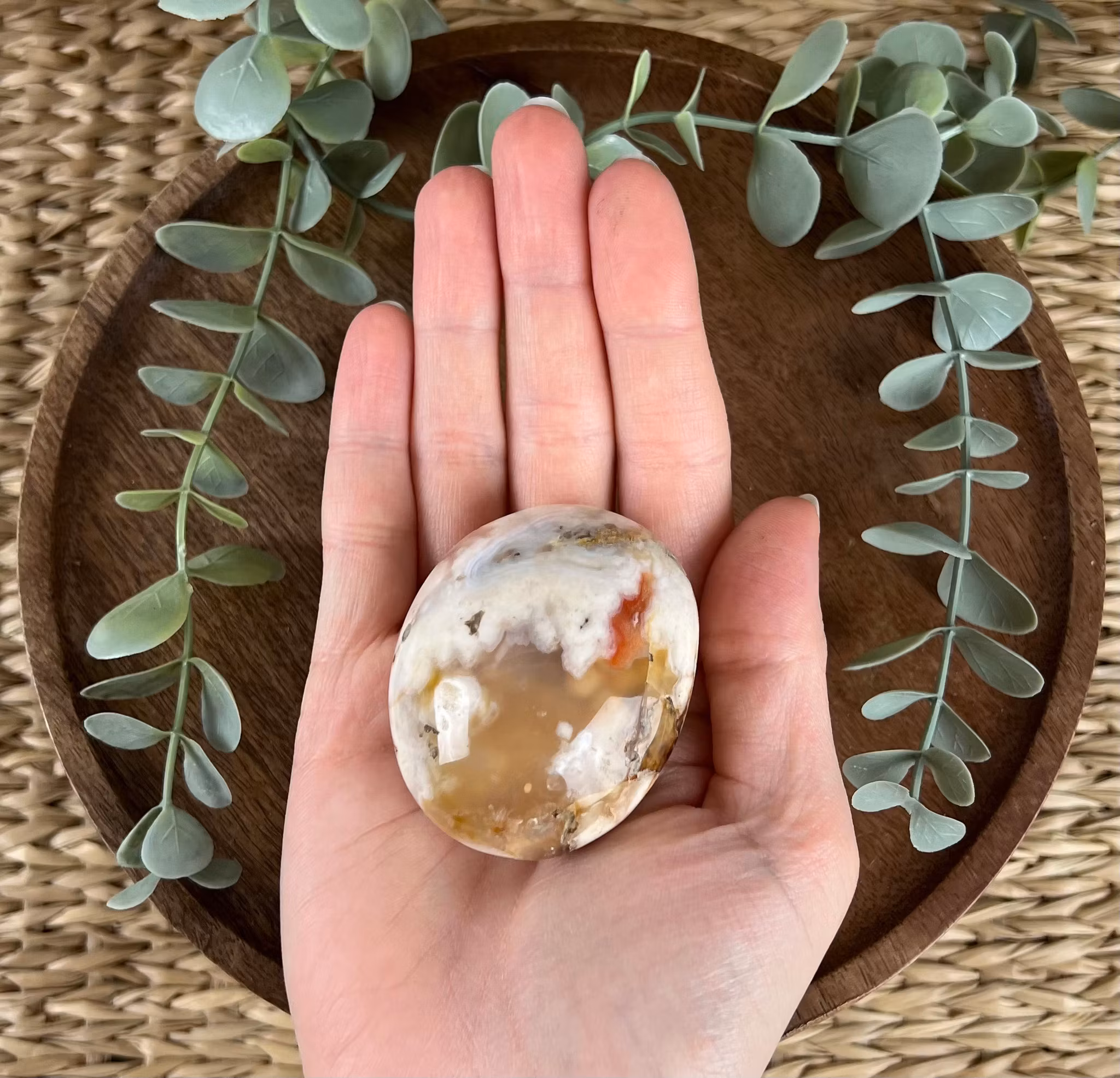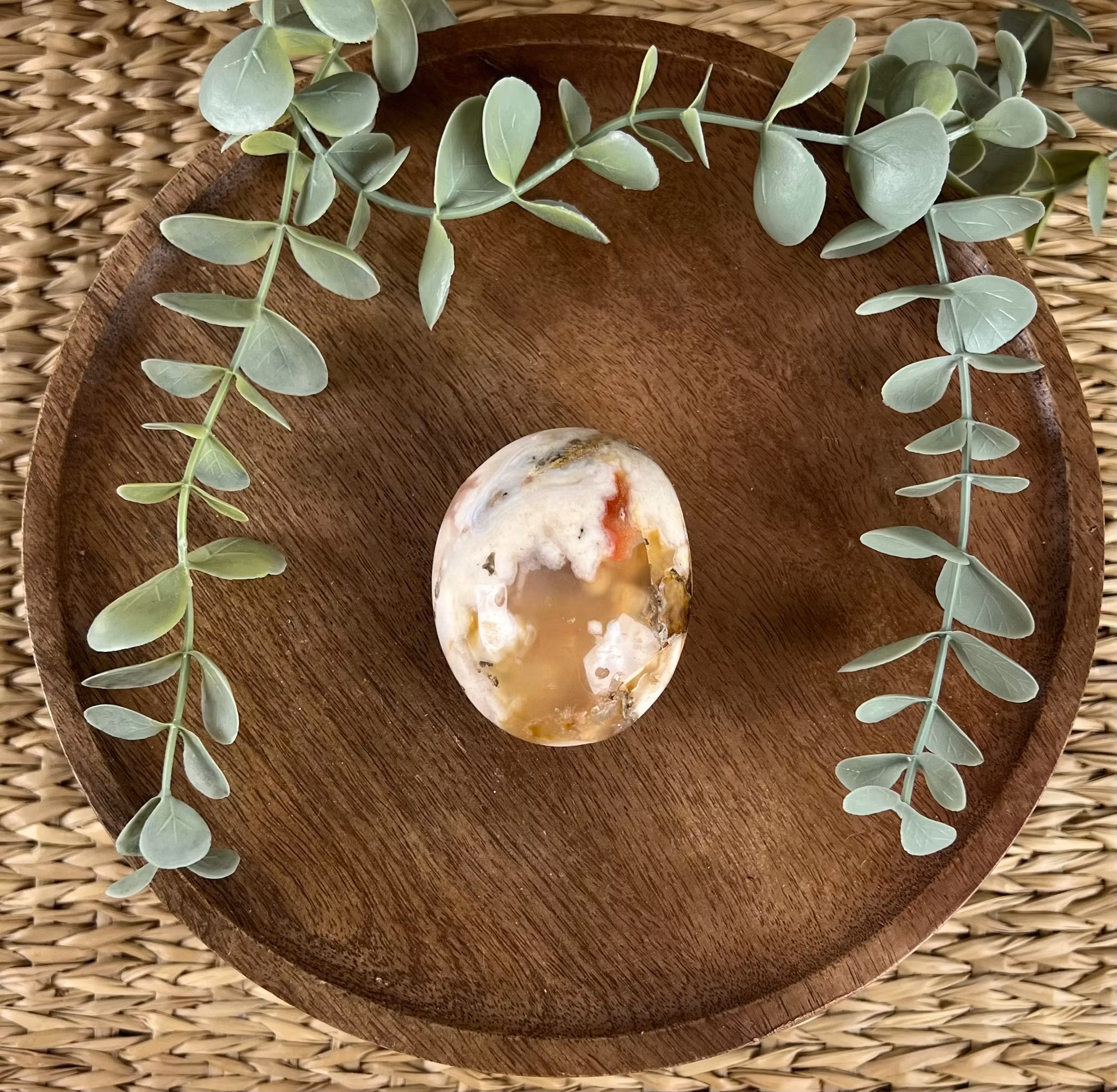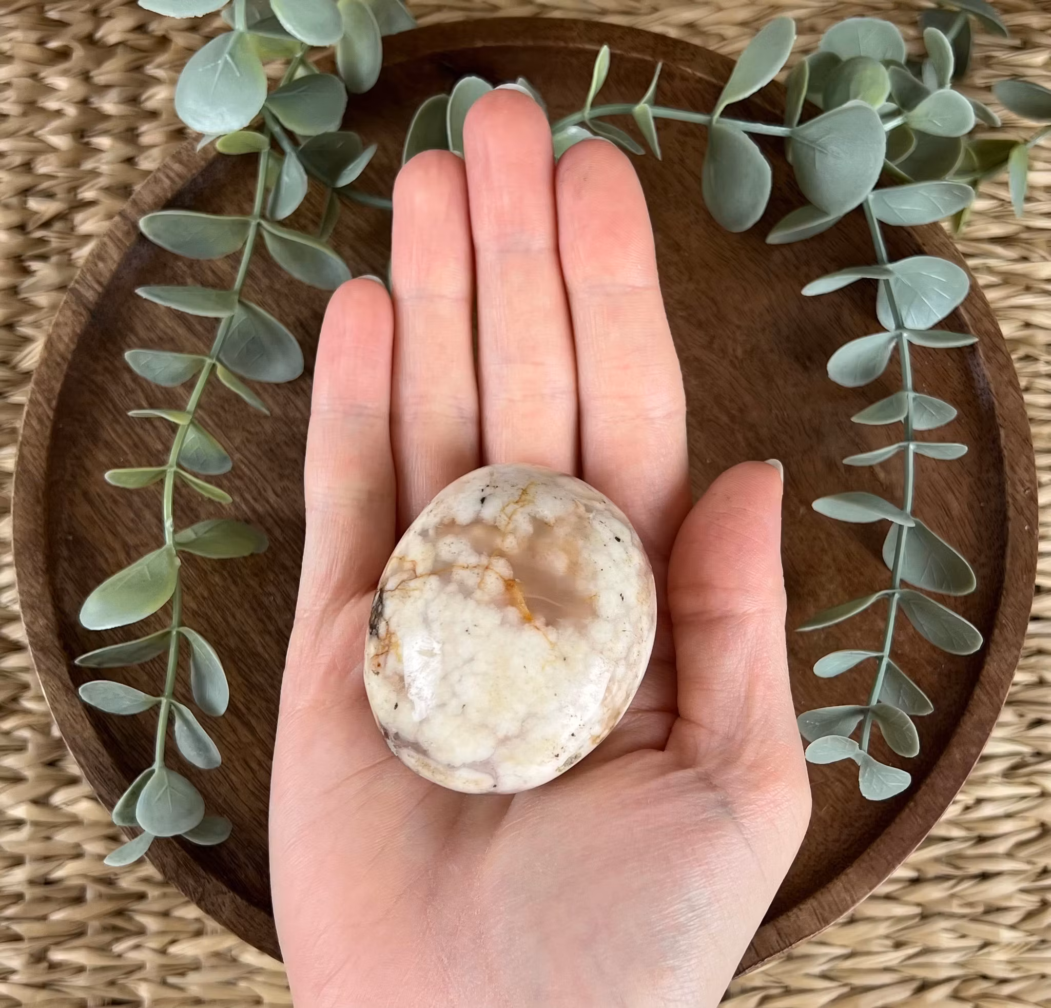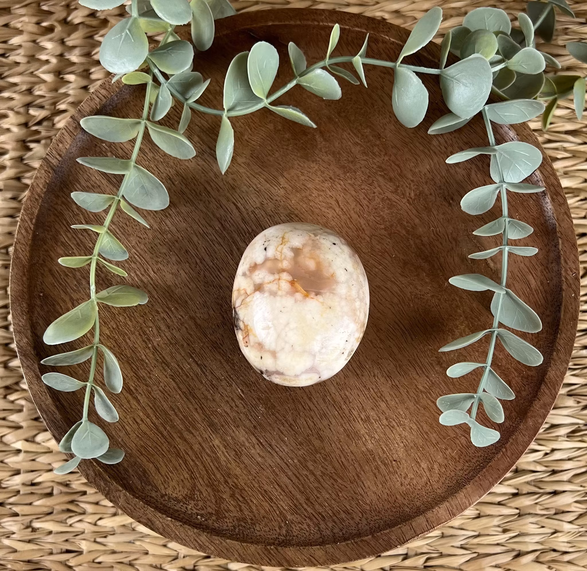 PĂ„ bilden ser ni en meditationssten (handsten) av Blomsteragat đž