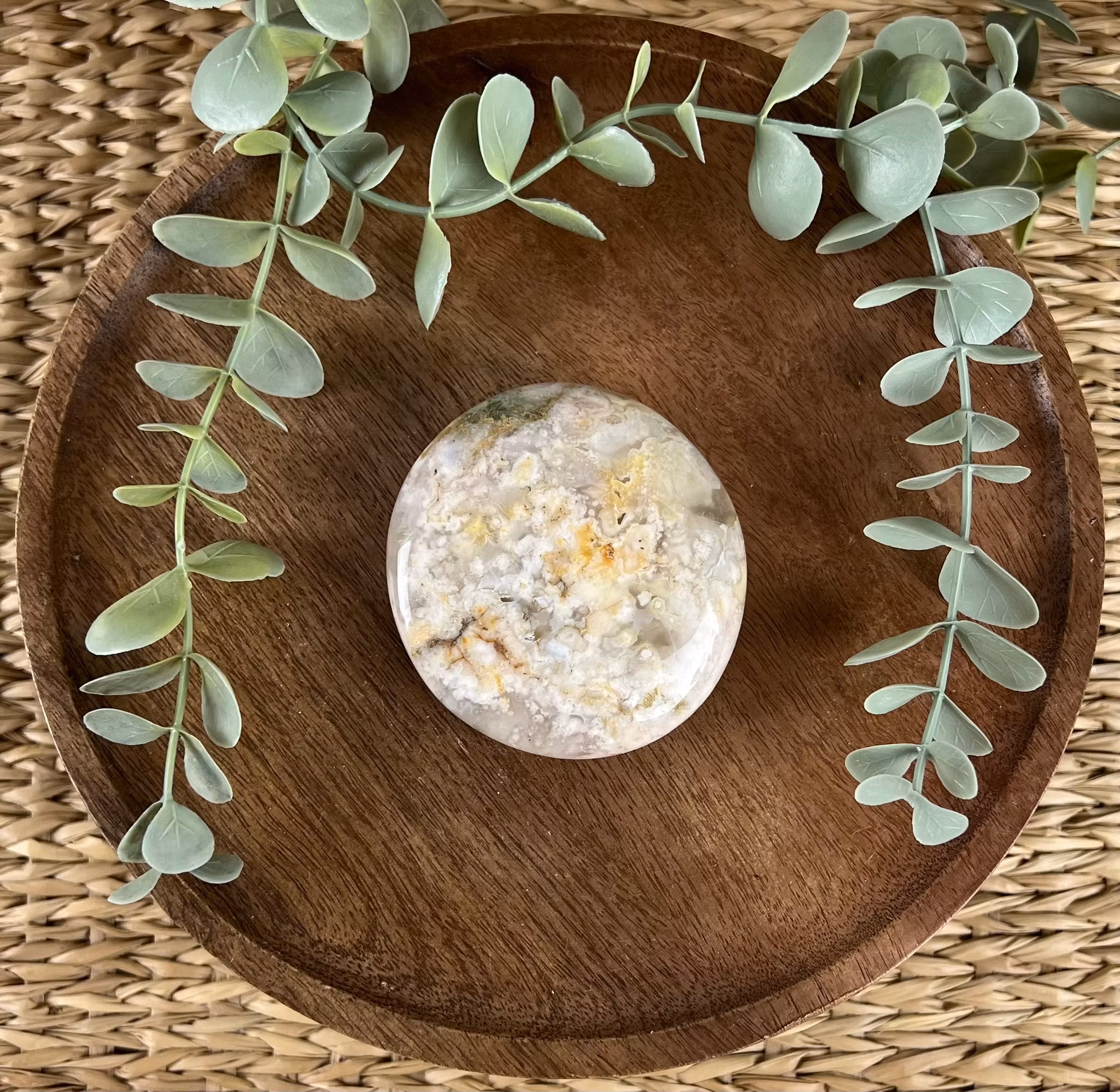 PĂ„ bilden ser ni en meditationssten (handsten) av Blomsteragat đž
