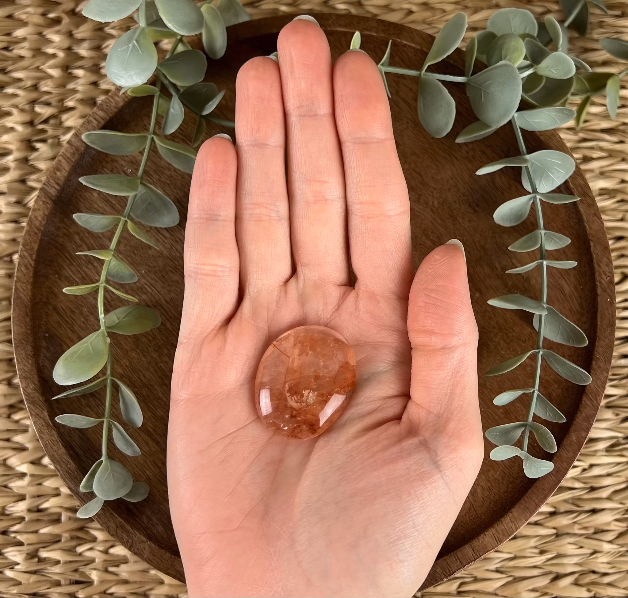 Eldkvarts (röd hemstoidkvarts) meditationssten (handsten)